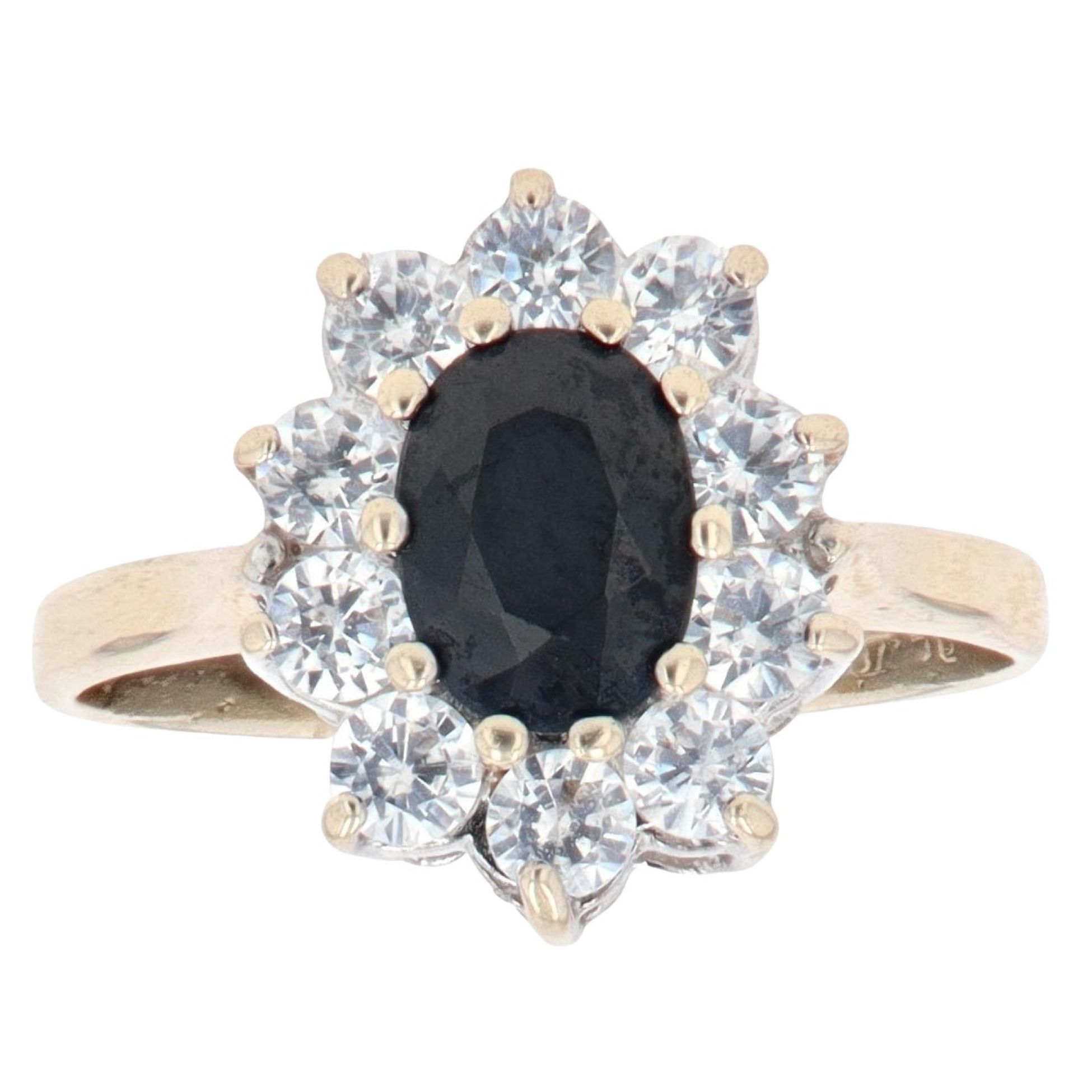 9ct Yellow Gold Sapphire and Cubic Zirconia Cluster Ring