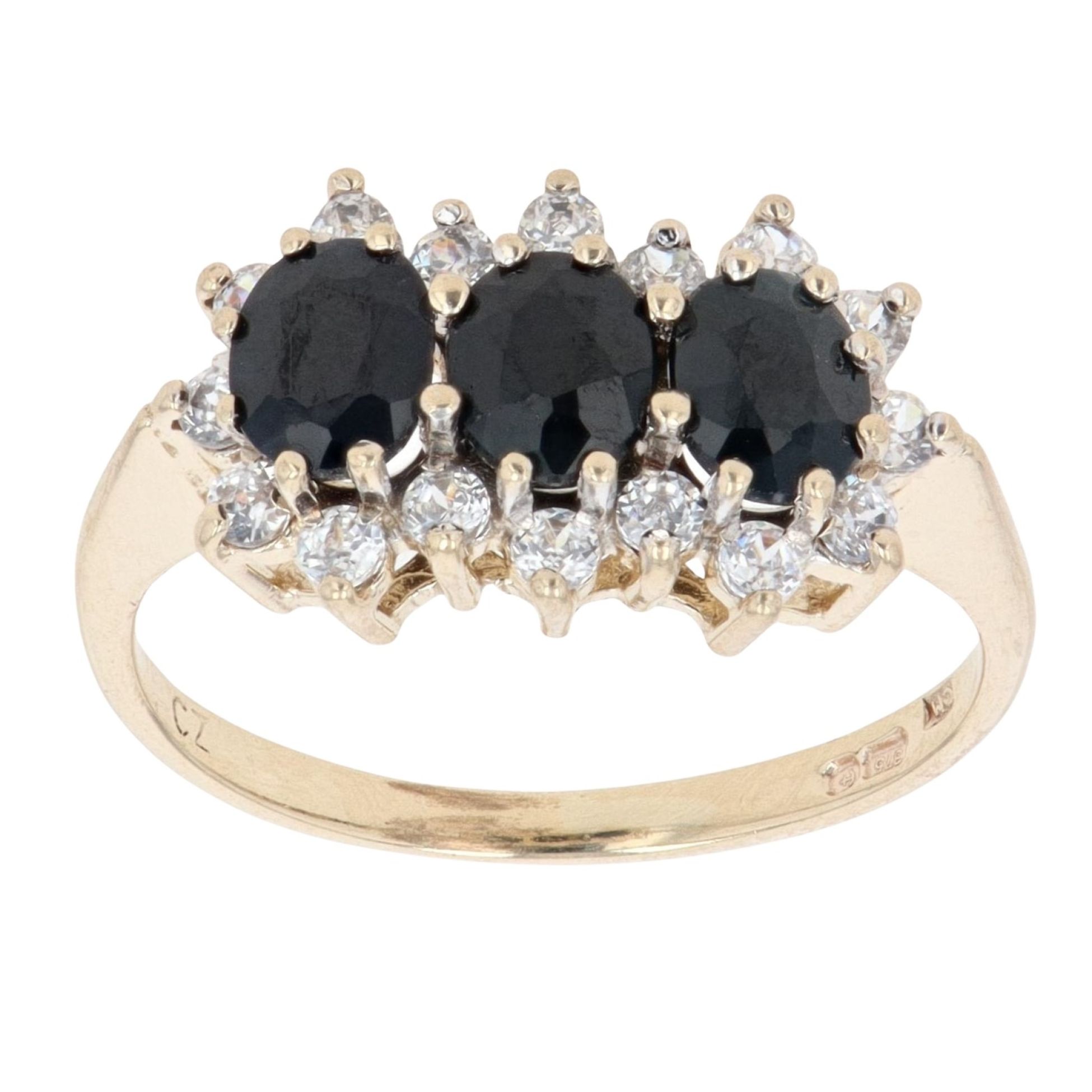 9ct Yellow Gold Sapphire And Cubic Zirconia Cluster Ring