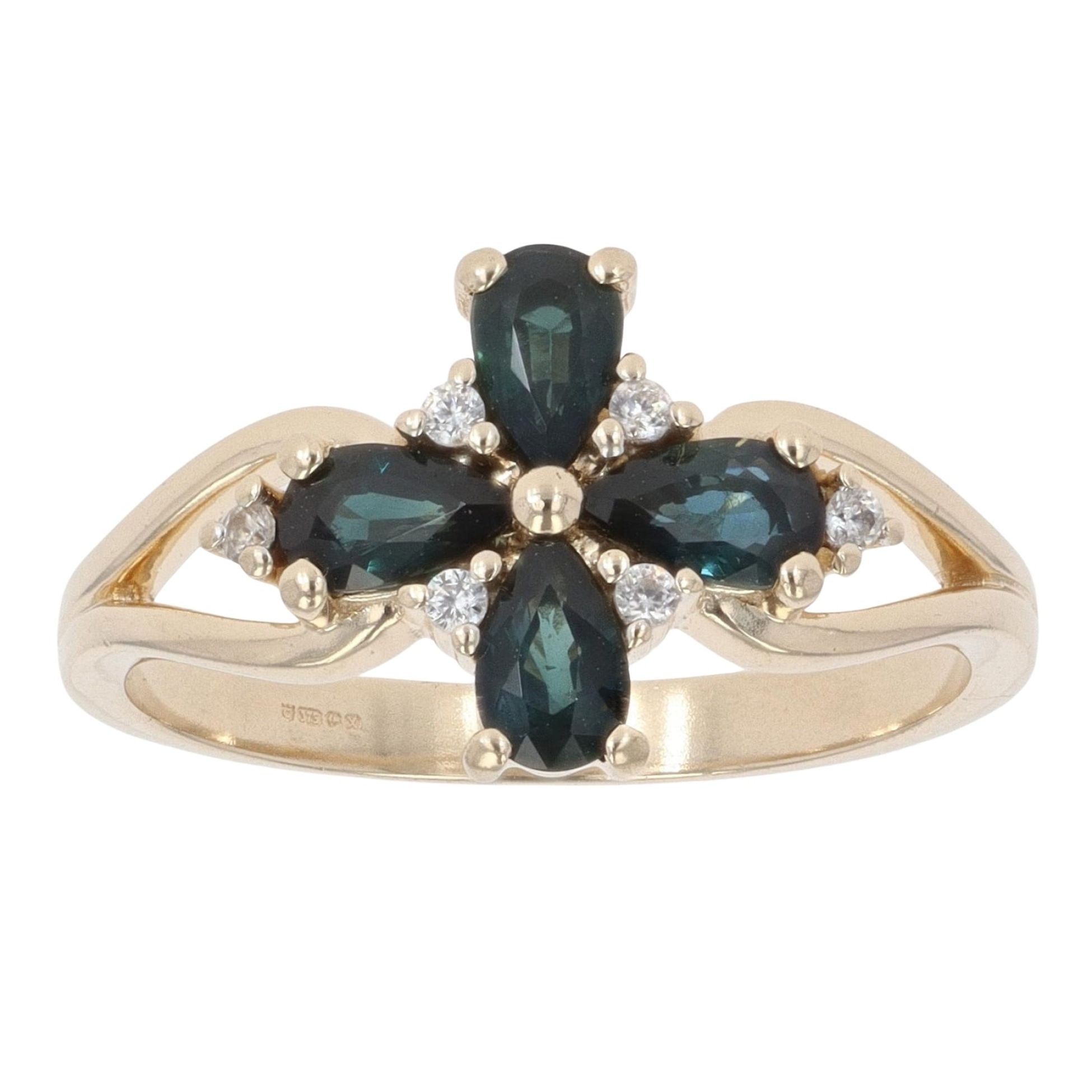 9ct Yellow Gold Sapphire And Cubic Zirconia Cluster Ring