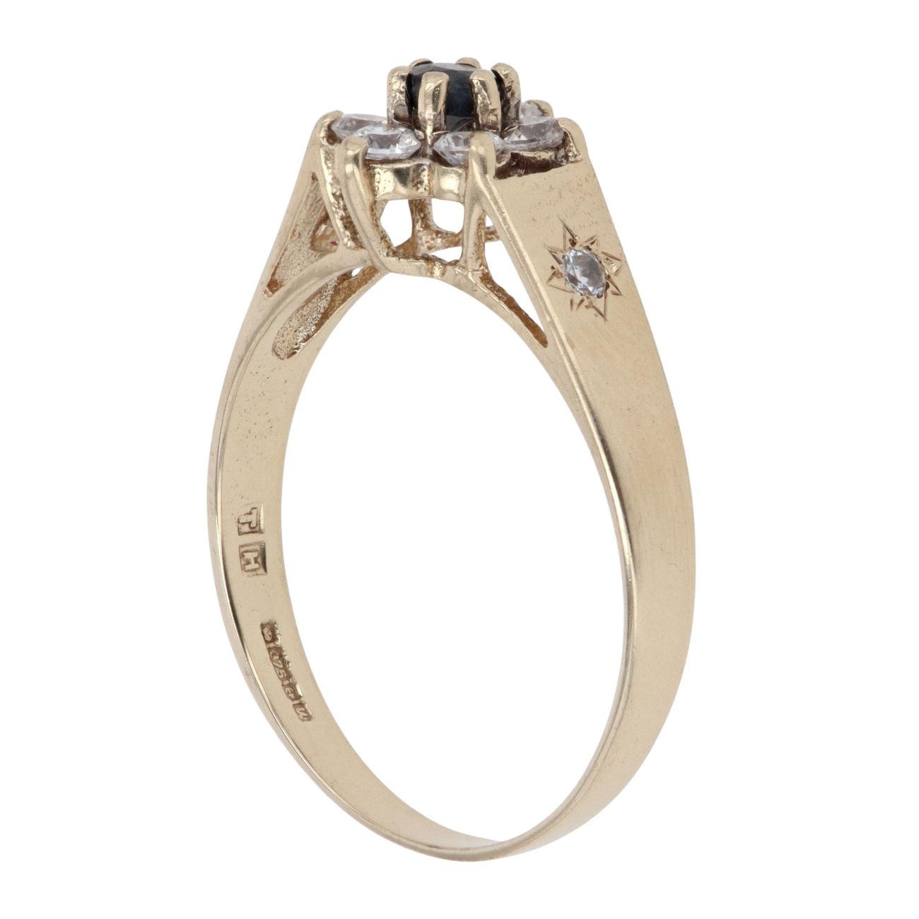 9ct Yellow Gold Sapphire And Cubic Zirconia Cluster Ring