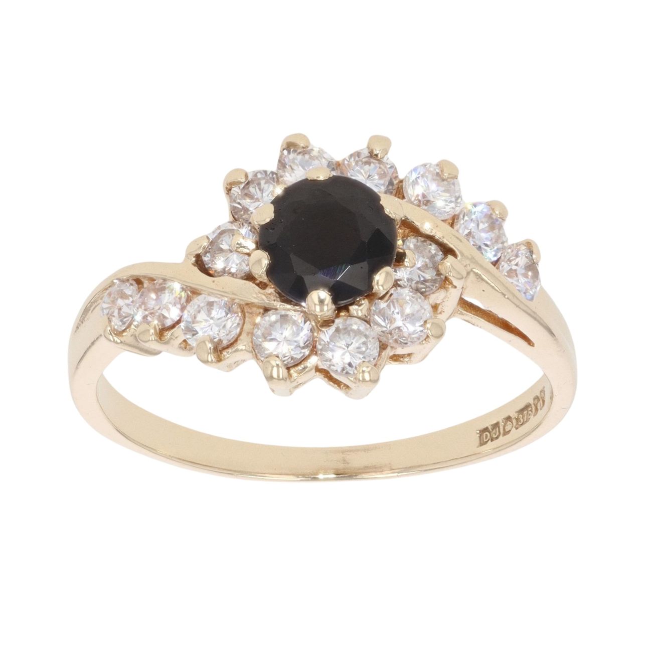 9ct Yellow Gold Sapphire And Cubic Zirconia Cluster Ring