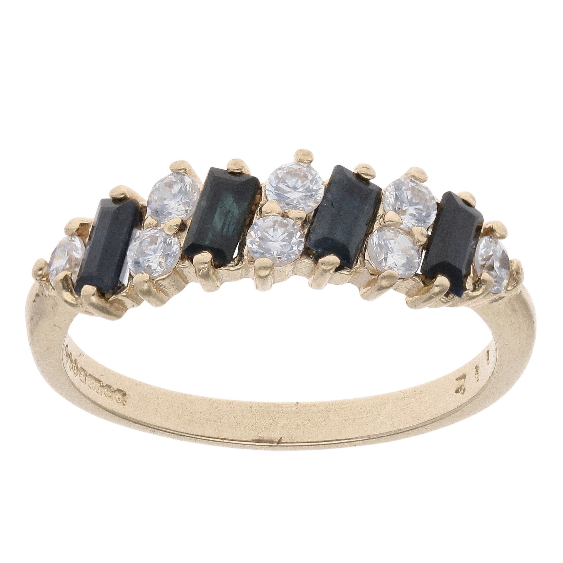 9ct Yellow Gold Sapphire And Cubic Zirconia Ring