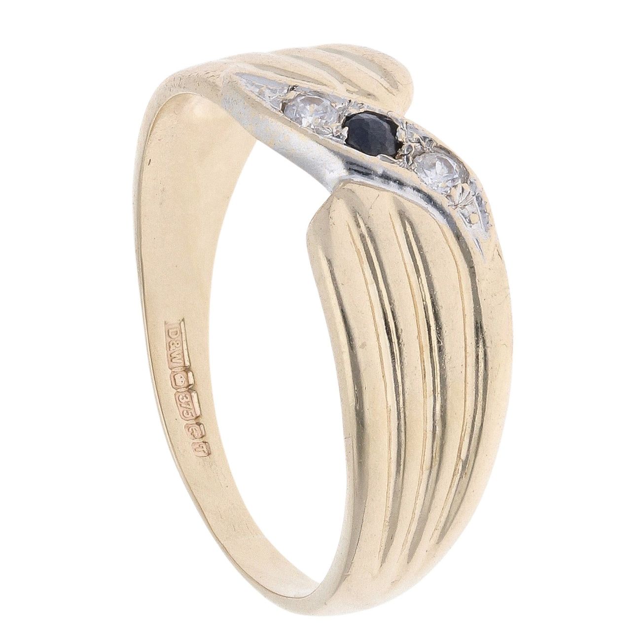 9ct Yellow Gold Sapphire And Cubic Zirconia Ring