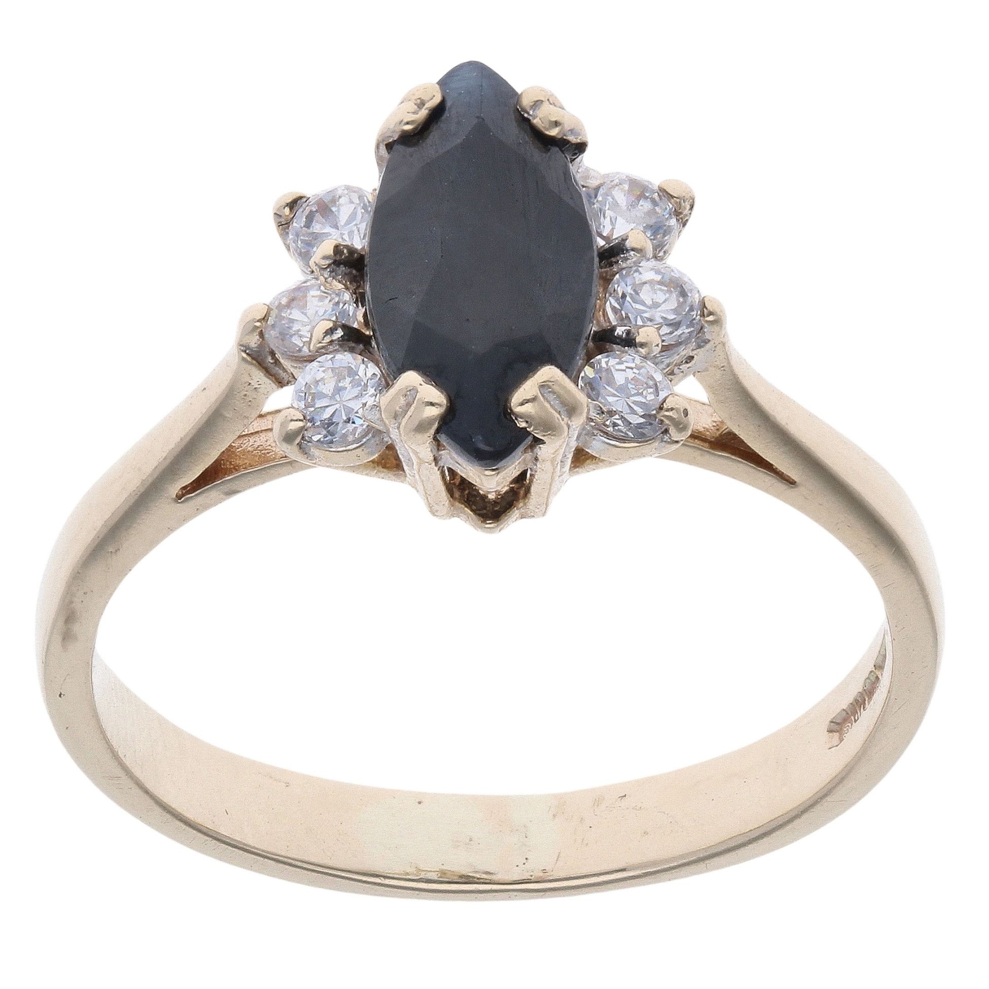 9ct Yellow Gold Sapphire And Cubic Zirconia Ring