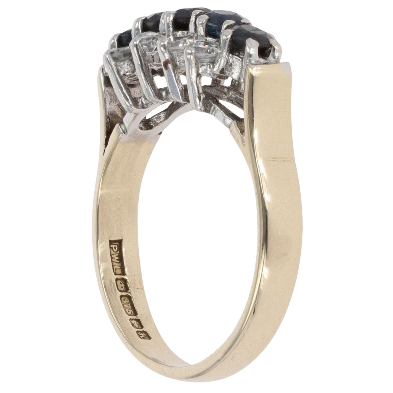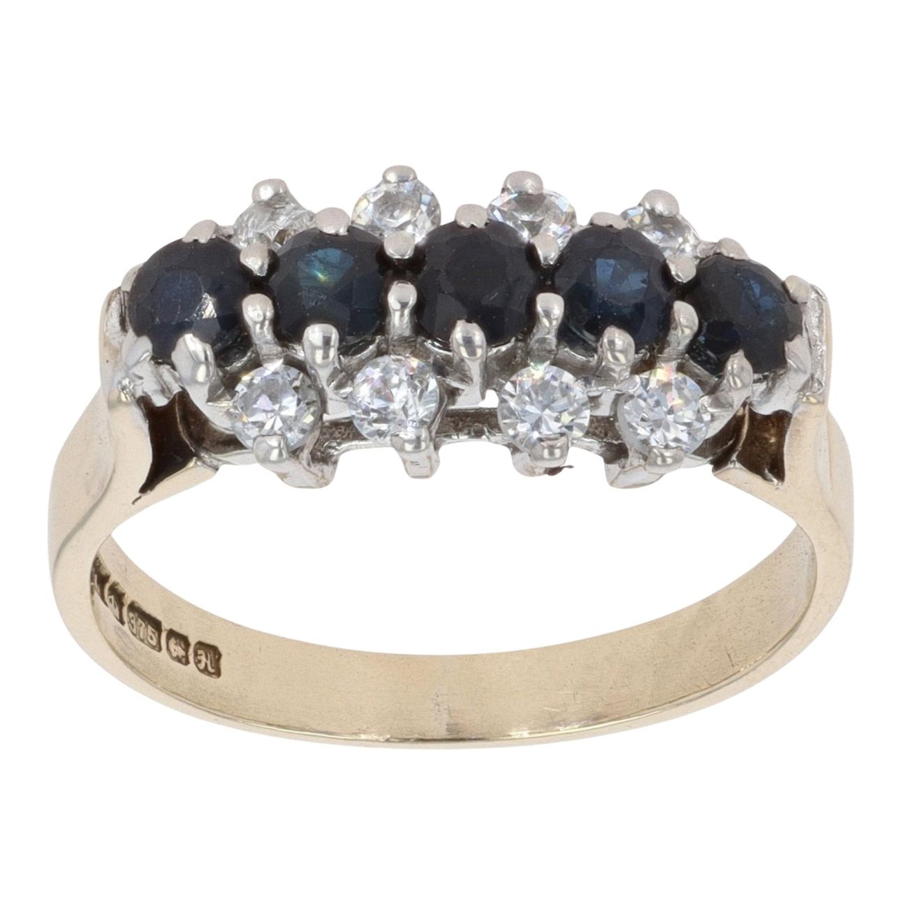 9ct Yellow Gold Sapphire and Cubic Zirconia Three Row Ring