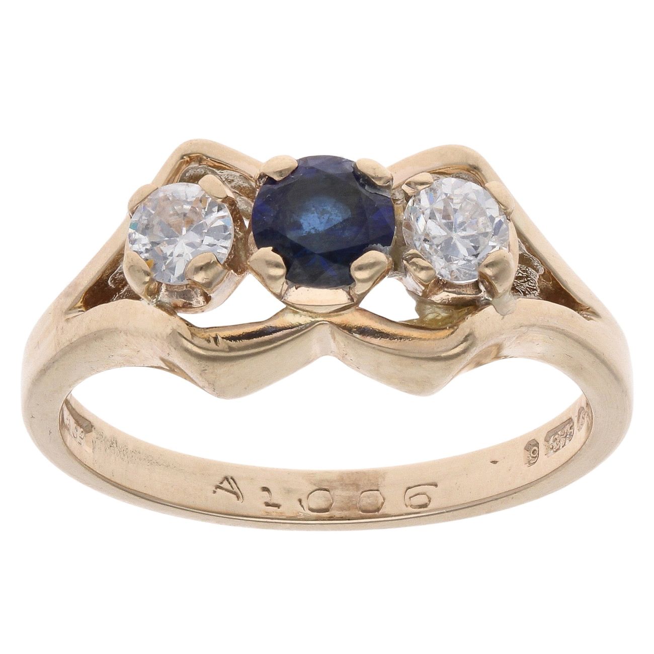 9ct Yellow Gold Sapphire And Cubic Zirconia Three Stone Ring