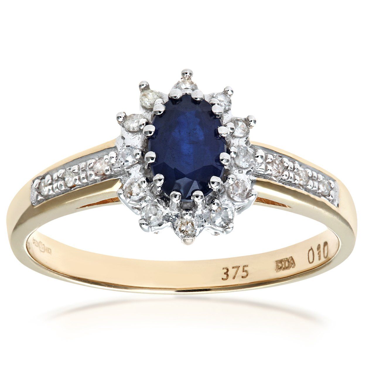 9ct Yellow Gold Sapphire and Diamond Cluster Ring