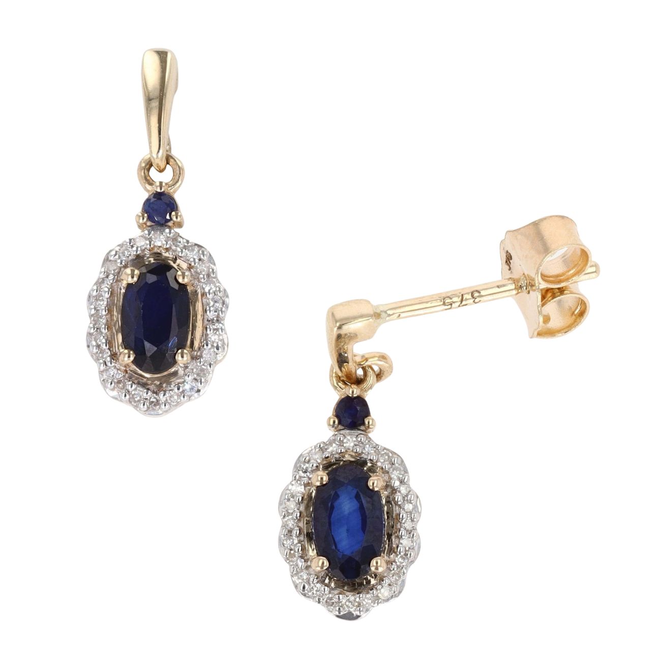 9ct Yellow Gold Sapphire And Diamond Drop Earrings