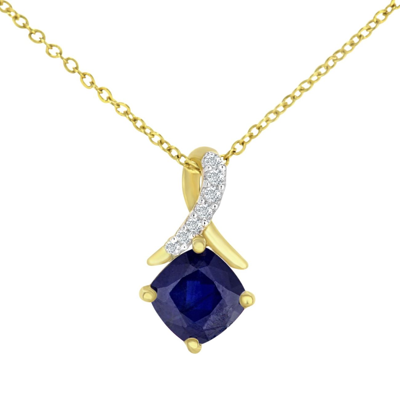 9ct Yellow Gold Sapphire Crossover Diamond Pendant Necklace