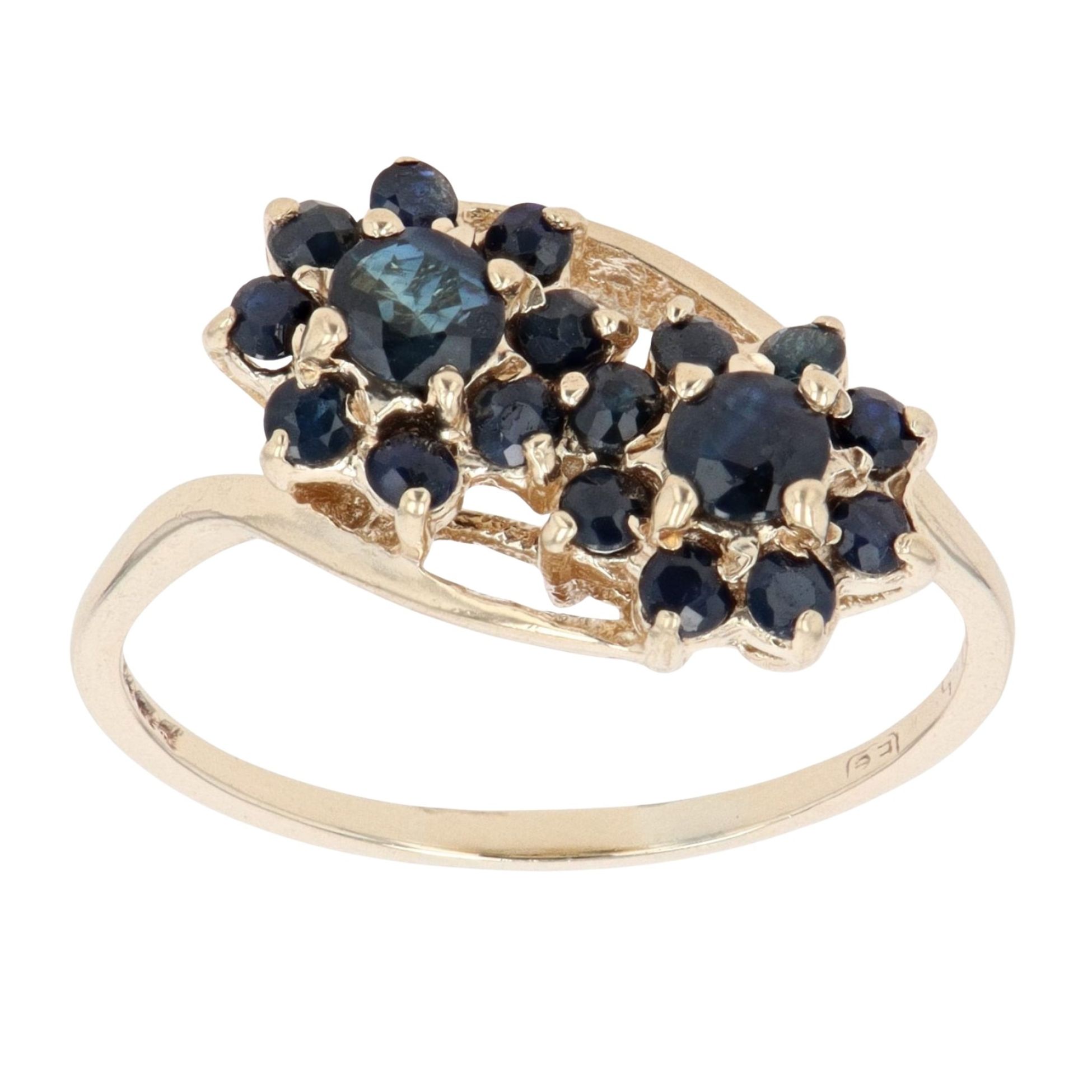 9ct Yellow Gold Sapphire Double Cluster Ring