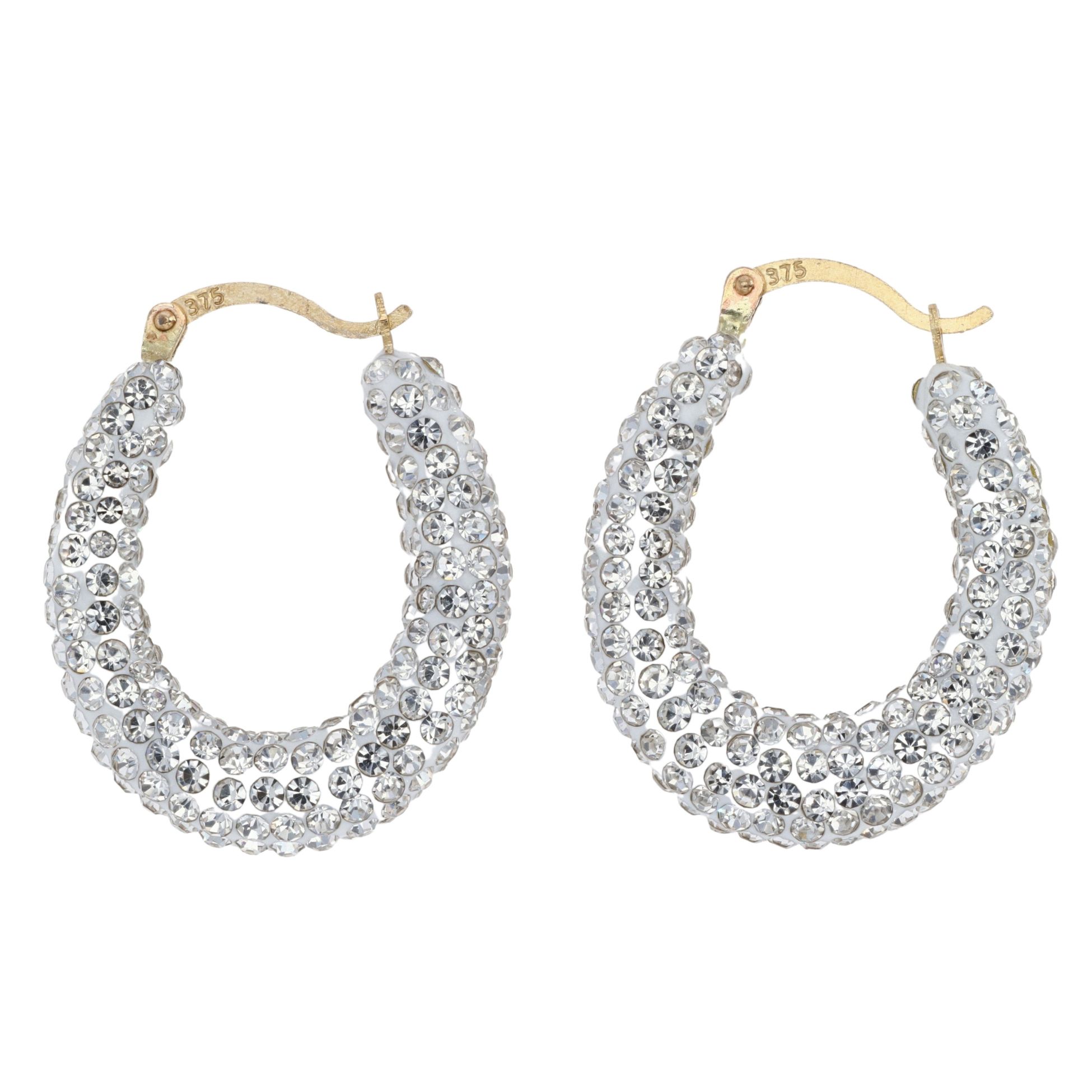 9ct Yellow Gold Silver Crystal Hoop Earrings