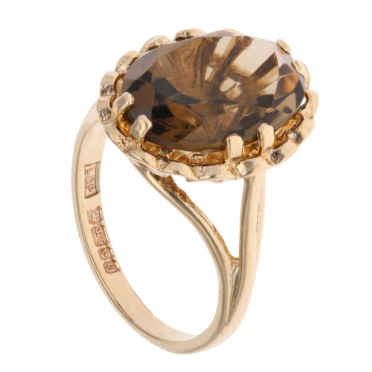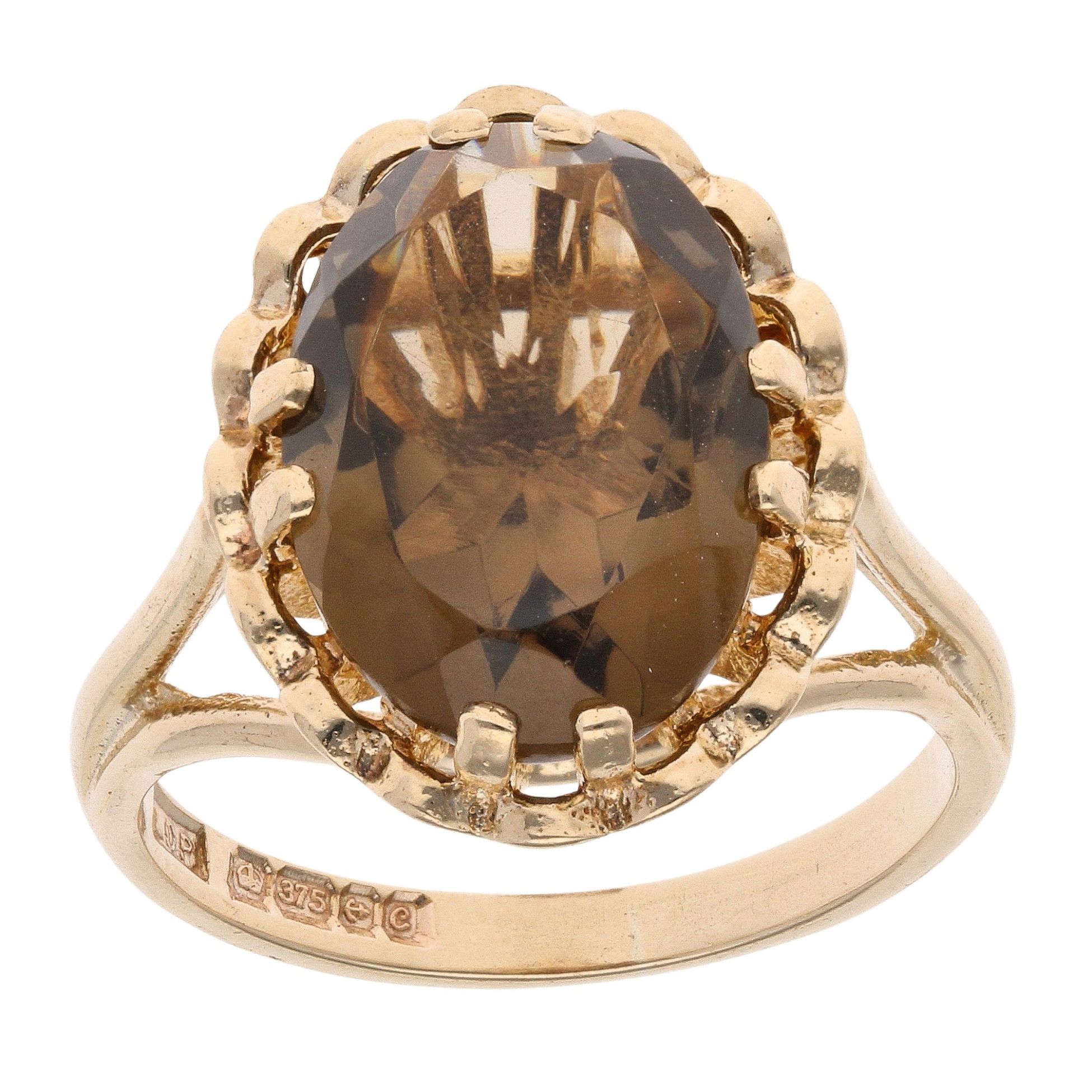 9ct Yellow Gold Smoky Quartz Large Oval Ring