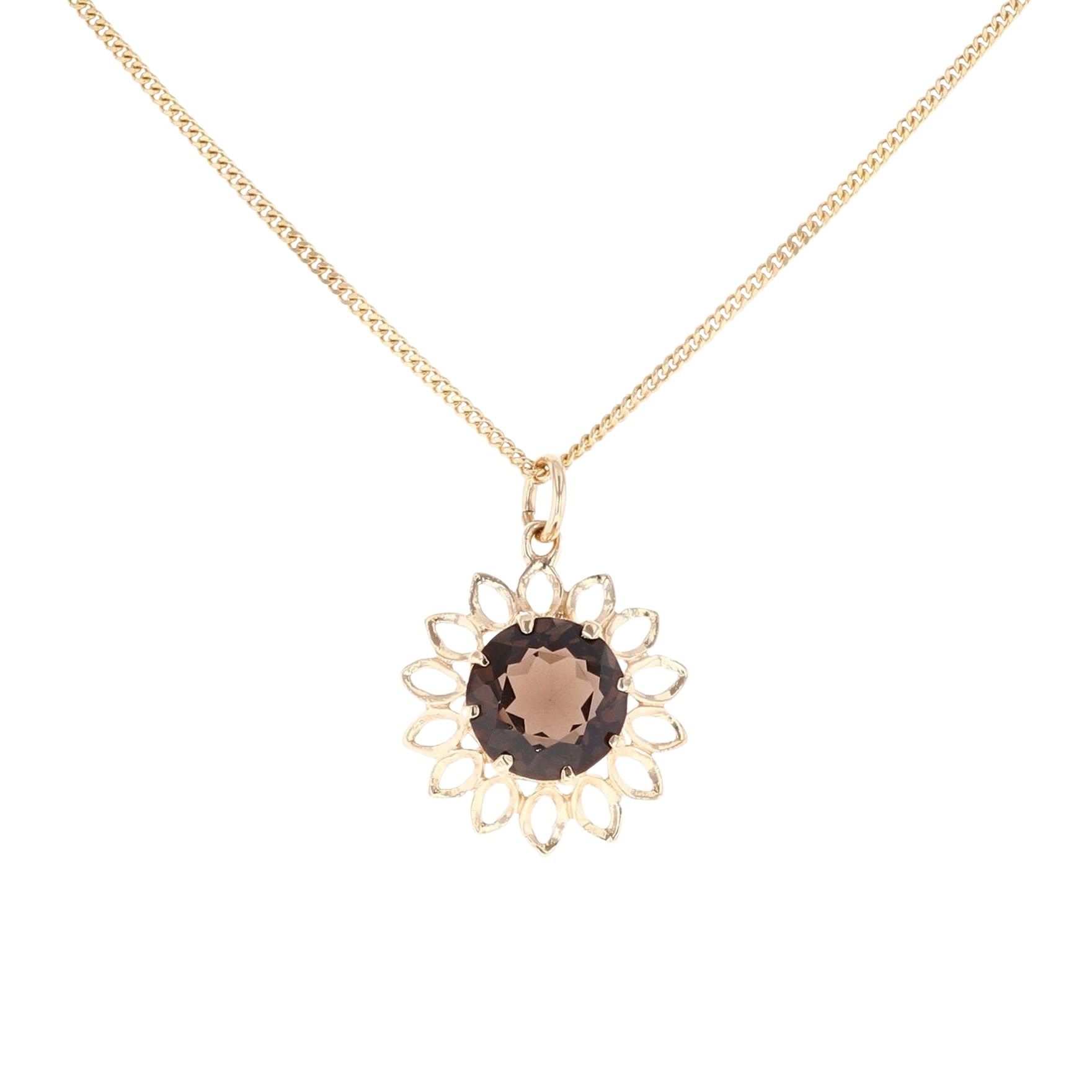 9ct Yellow Gold Smoky Quartz Pendant And Curb Chain 18"