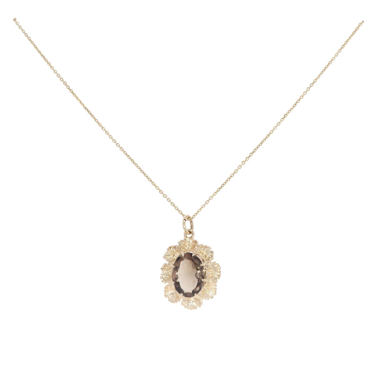 9ct Yellow Gold Smoky Quartz Single Stone Pendant And Chain 16"