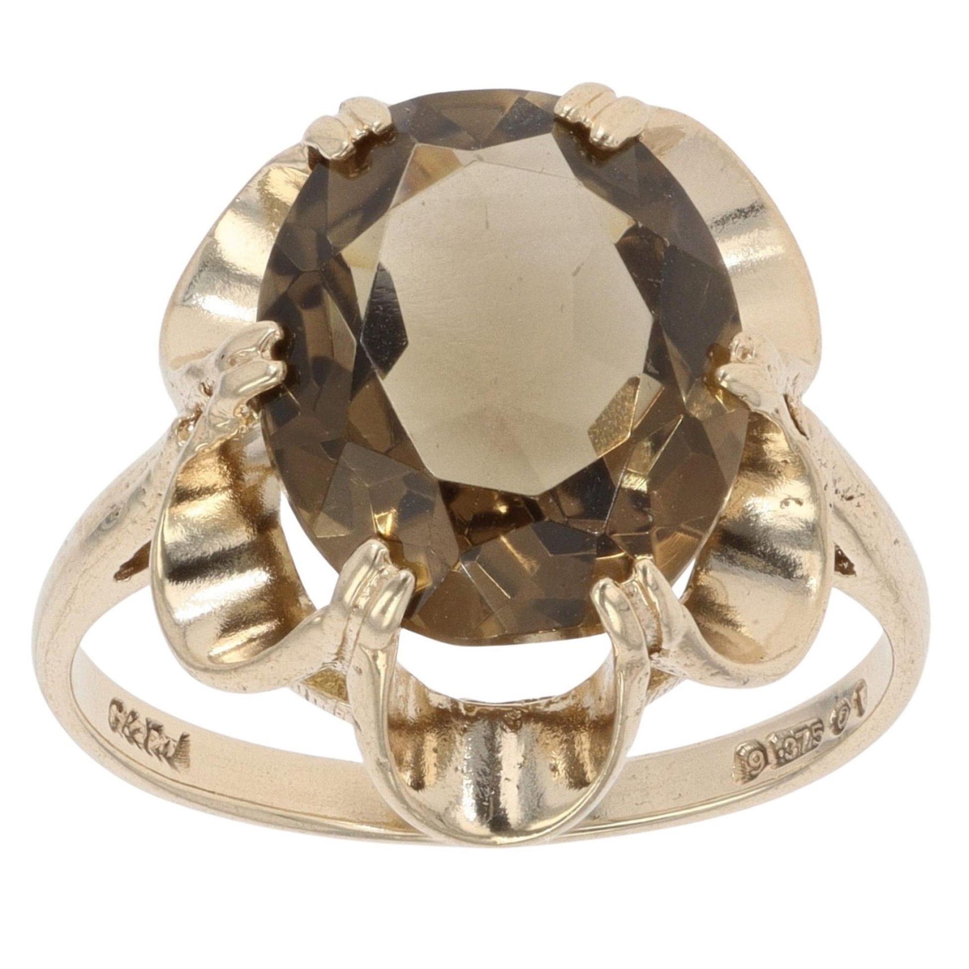 9ct Yellow Gold Smoky Quartz Single Stone Ring