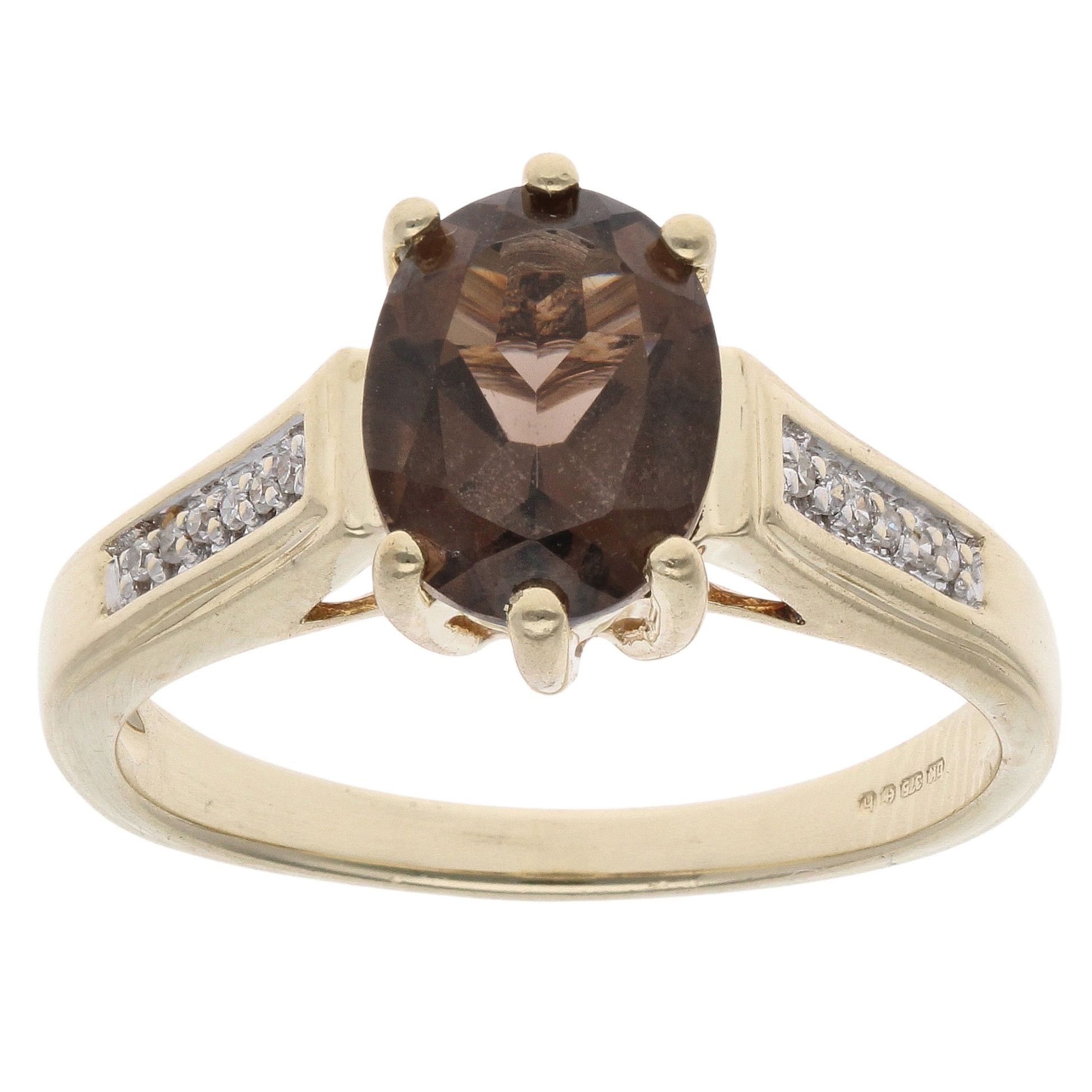 9ct Yellow Gold Smoky Quartz Single Stone Ring