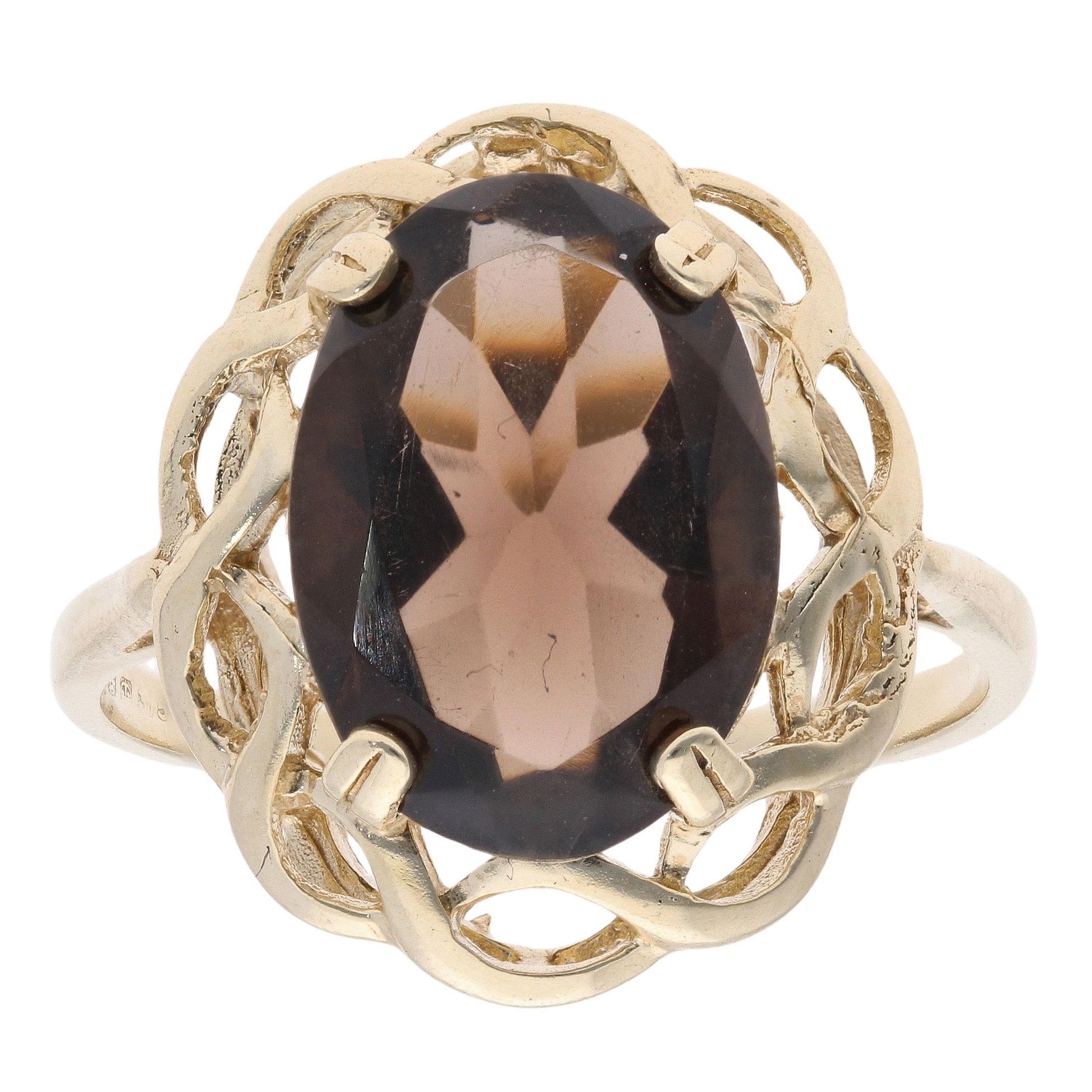 9ct Yellow Gold Smoky Quartz Single Stone Ring