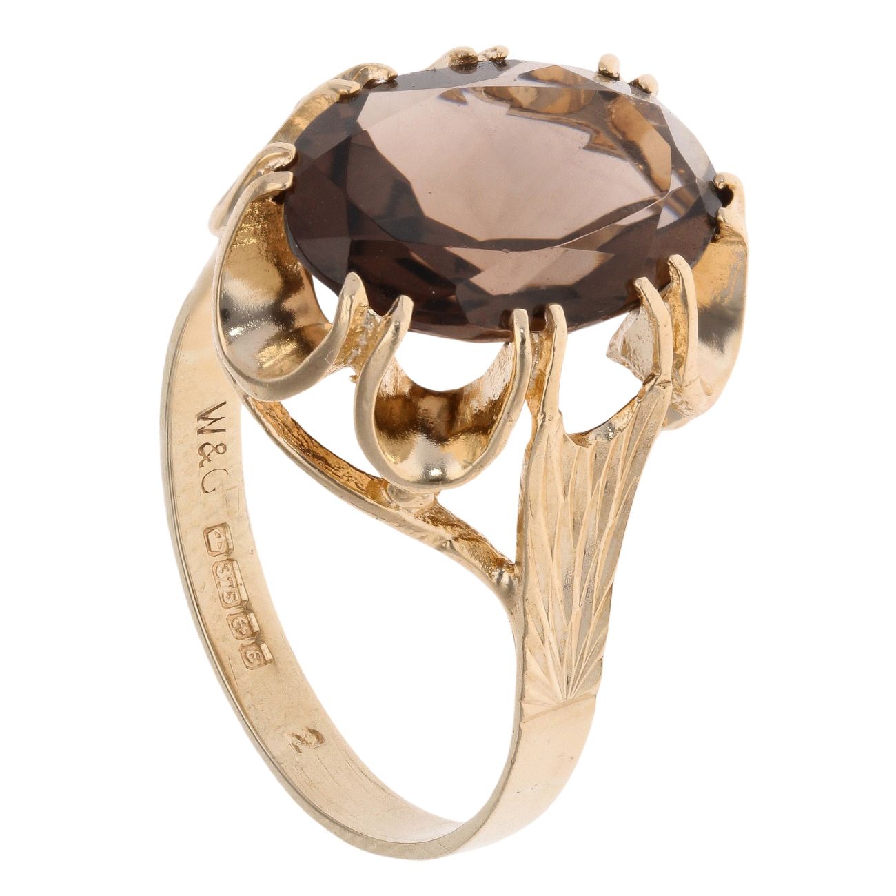 9ct Yellow Gold Smoky Quartz Single Stone Ring