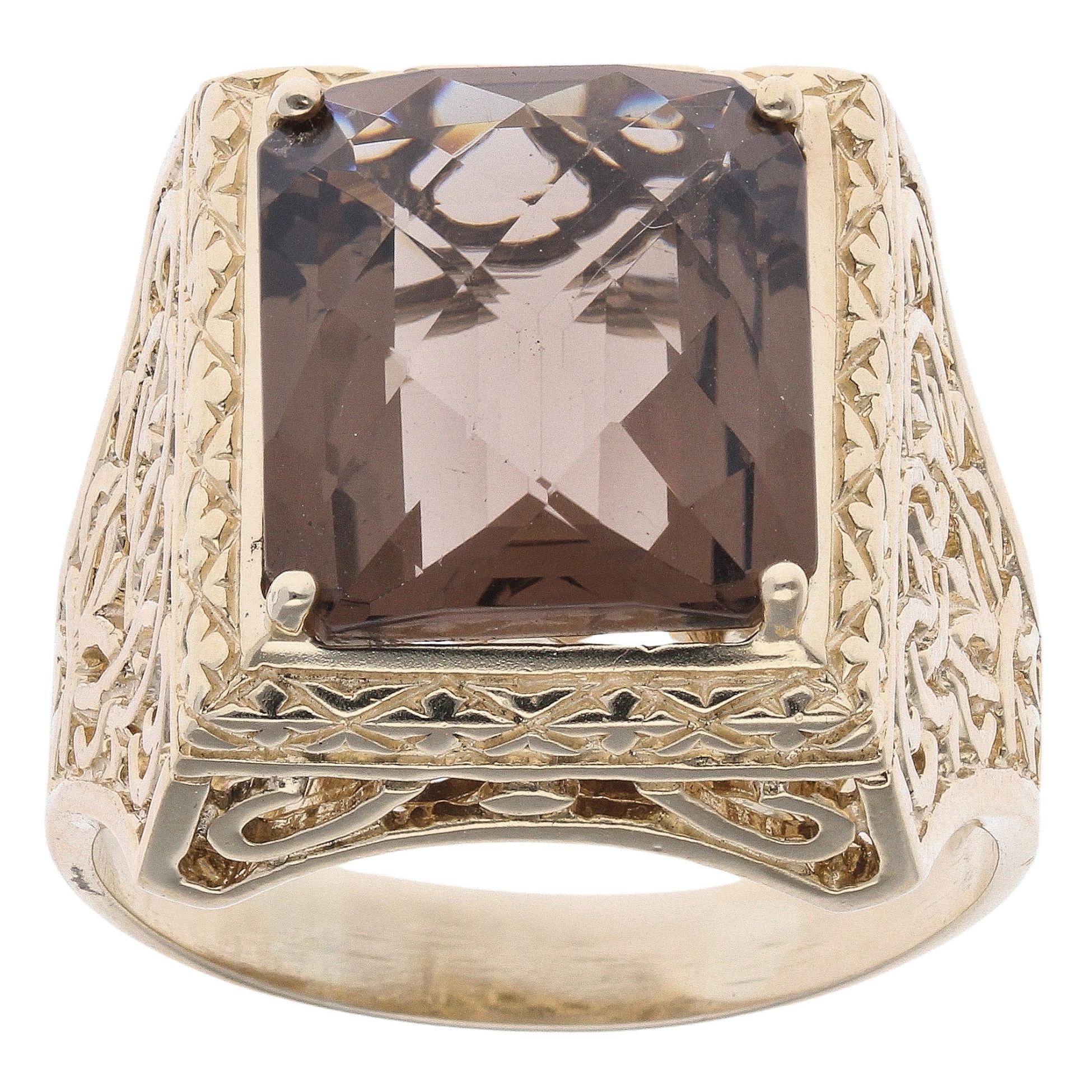 9ct Yellow Gold Smoky Quartz Single Stone Ring
