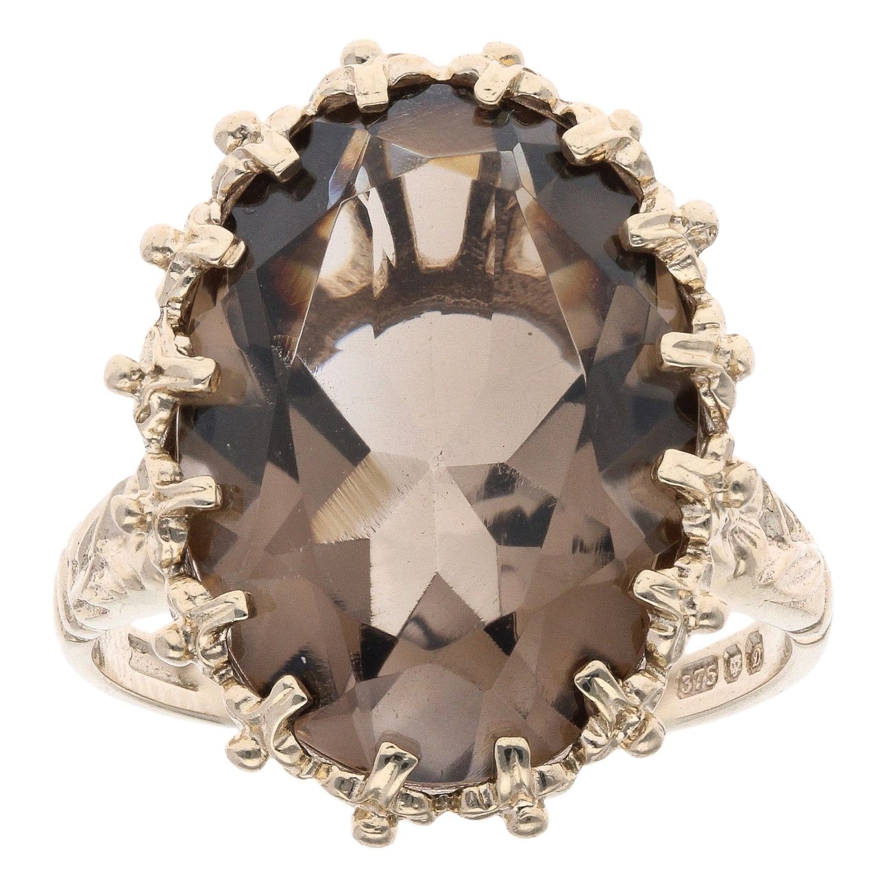 9ct Yellow Gold Smoky Quartz Single Stone Ring