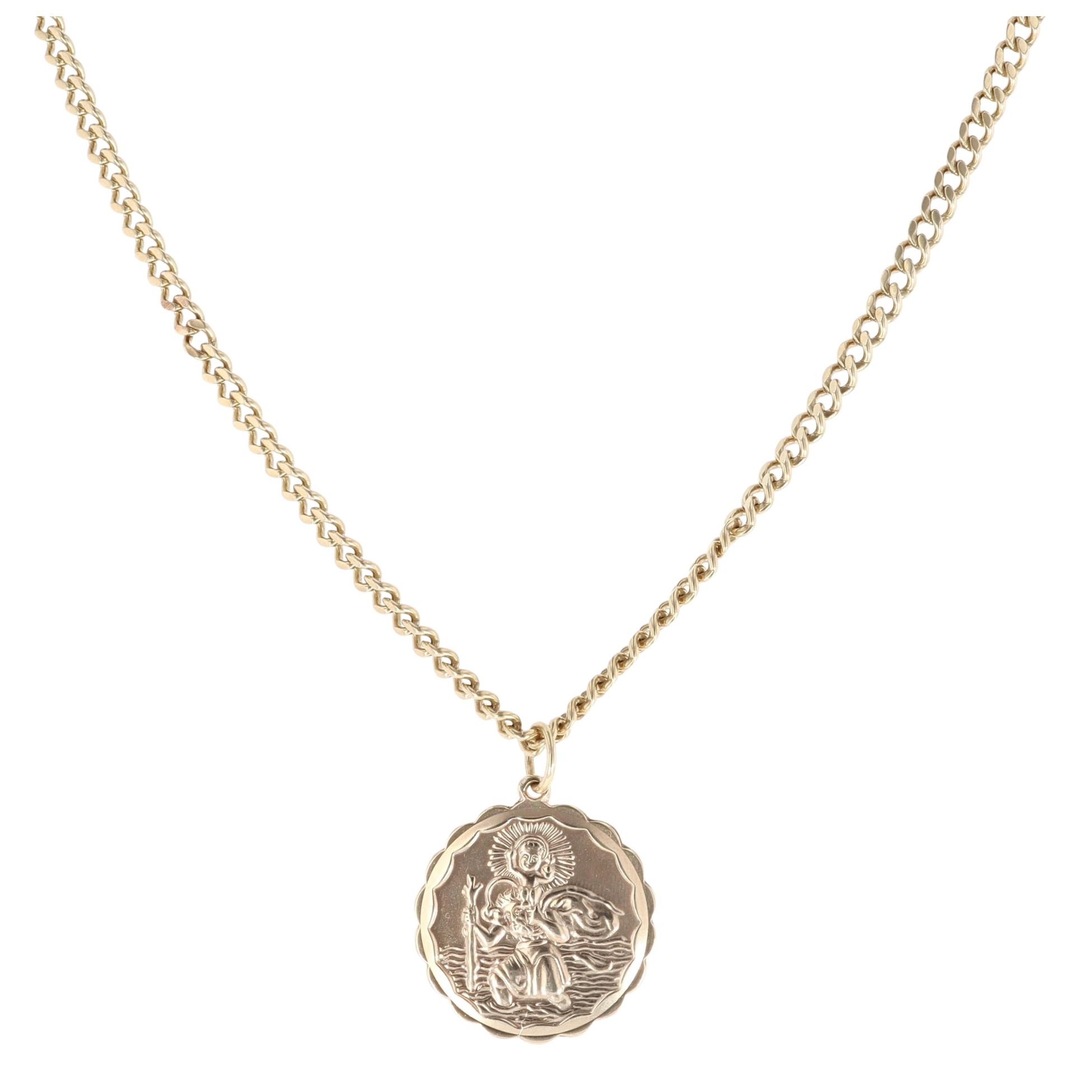 9ct Yellow Gold St Christopher Pendant And Chain 24"