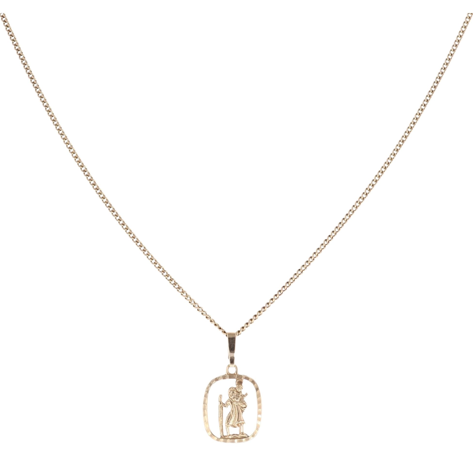 9ct Yellow Gold St George Pendant and Curb Chain 16"