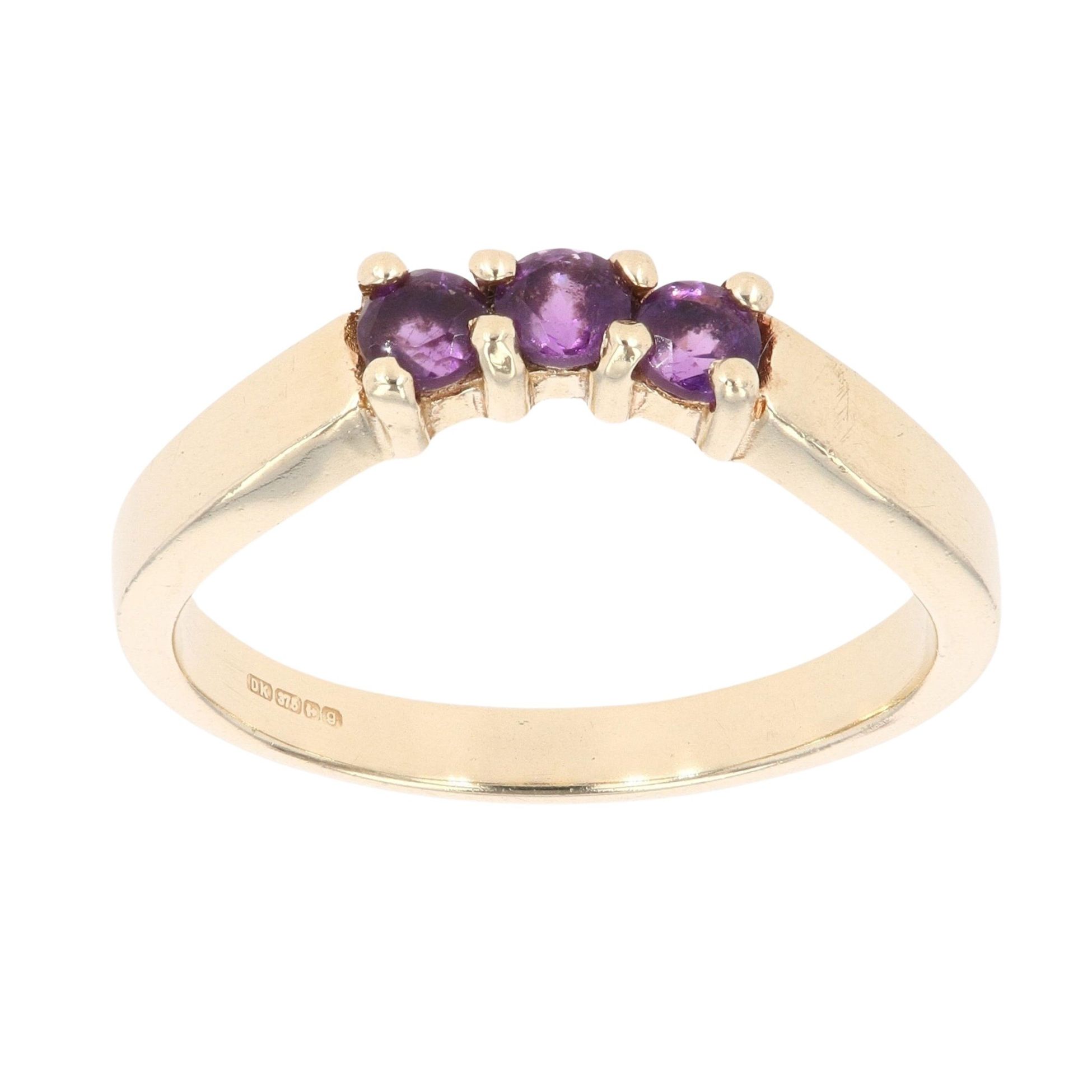 9ct Yellow Gold Three Stone Amethyst Ring