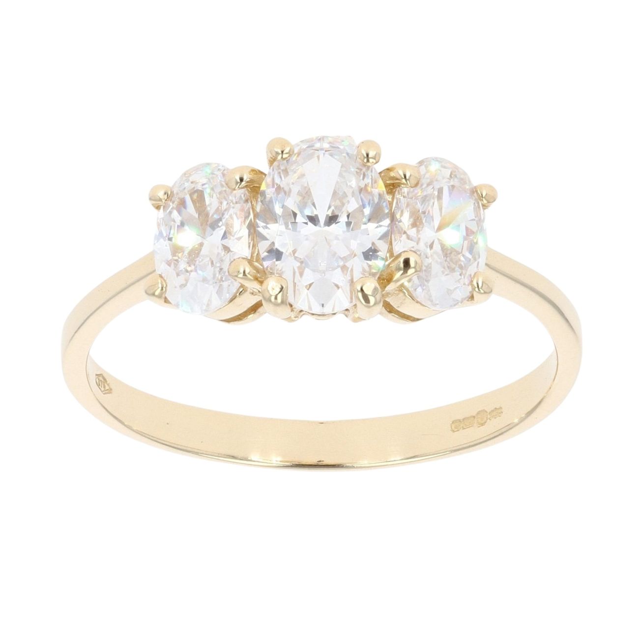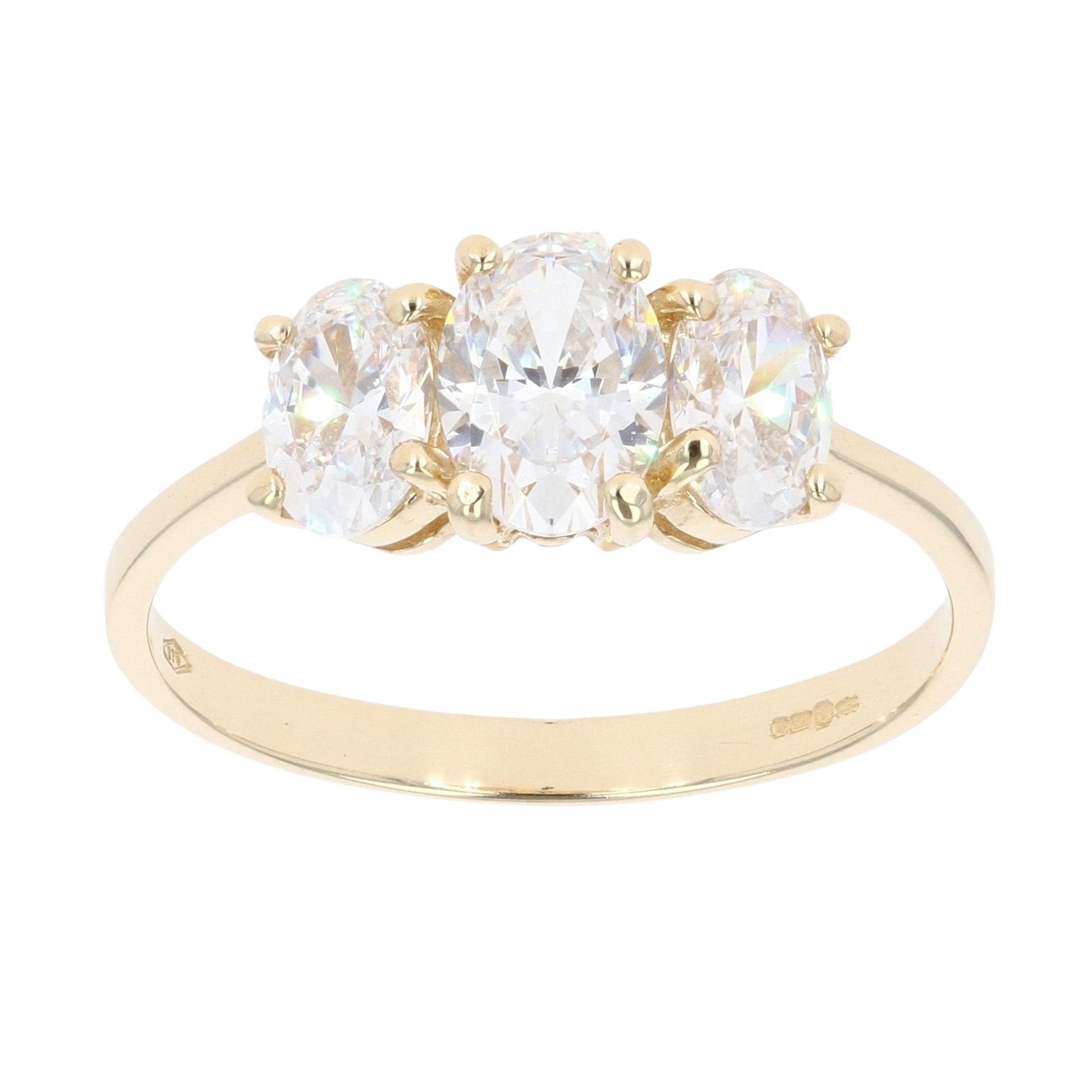9ct Yellow Gold Three Stone Cubic Zirconia Ring