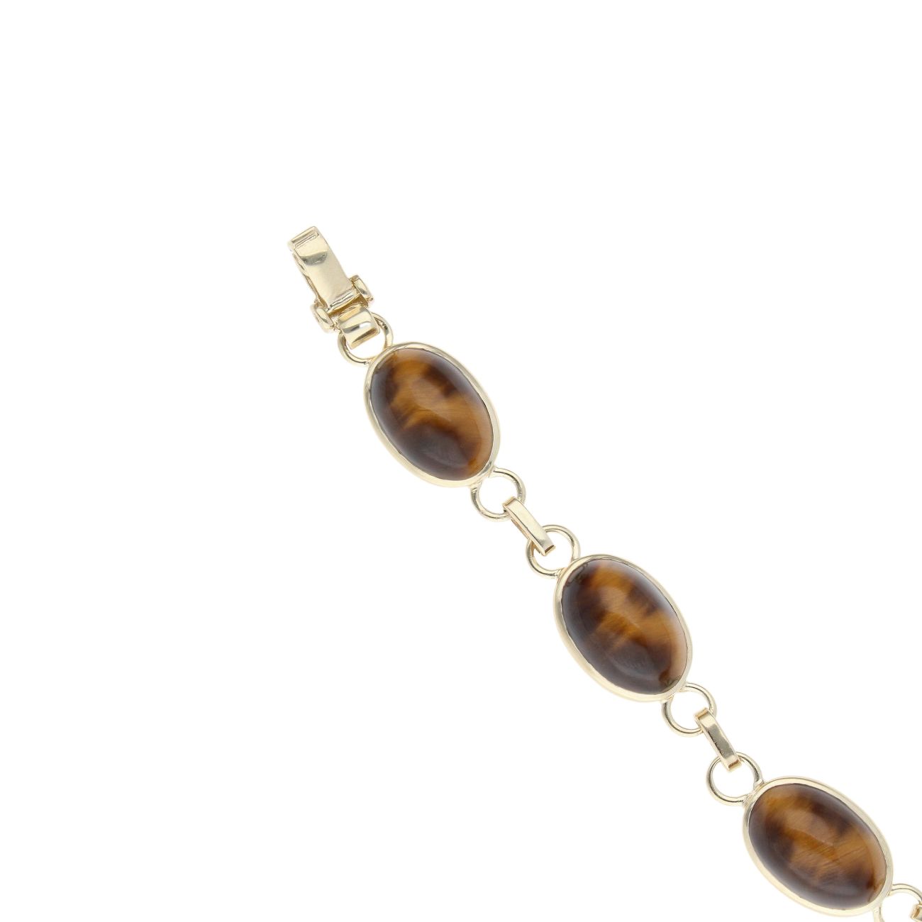 9ct Yellow Gold Tigers Eye Cabochon Stone Set Bracelet 7.5"