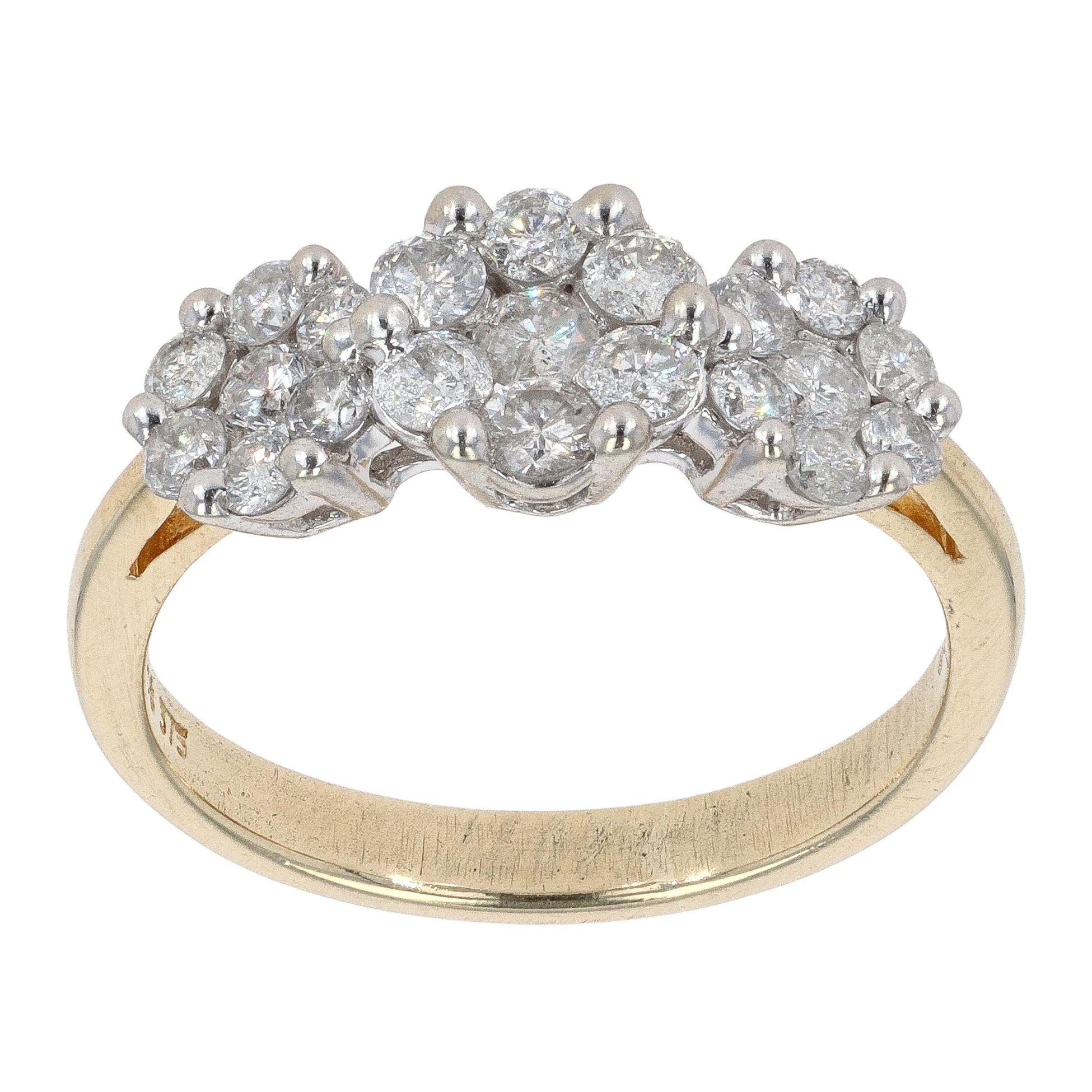 9ct Yellow Gold Triple Cluster 0.80ct Diamond Ring