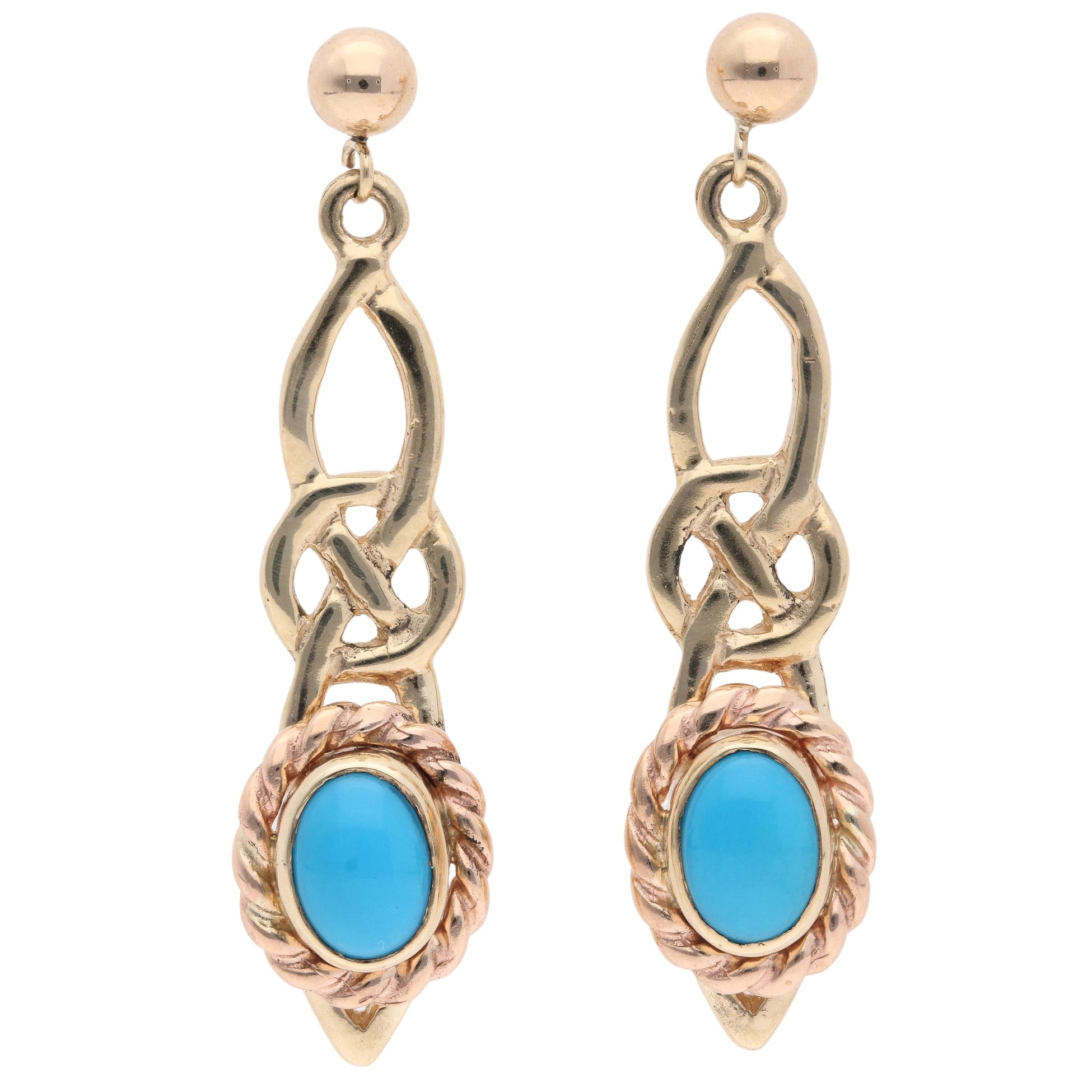 9ct Yellow Gold Turquoise Clogau Celtic Drop Earrings