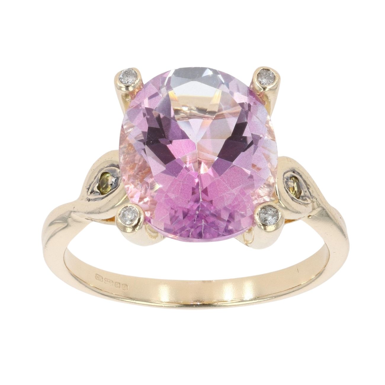 9ct Yellow Gold Yellow and Pink Topaz and 0.05ct Diamond Ring