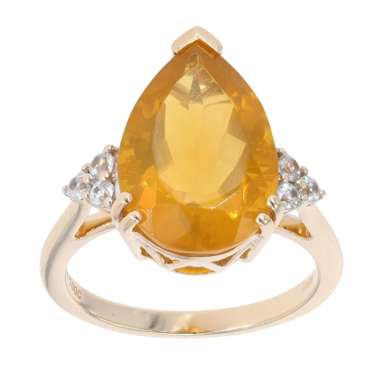 9ct Yellow Gold Yellow Opal And Cubic Zirconia Ring