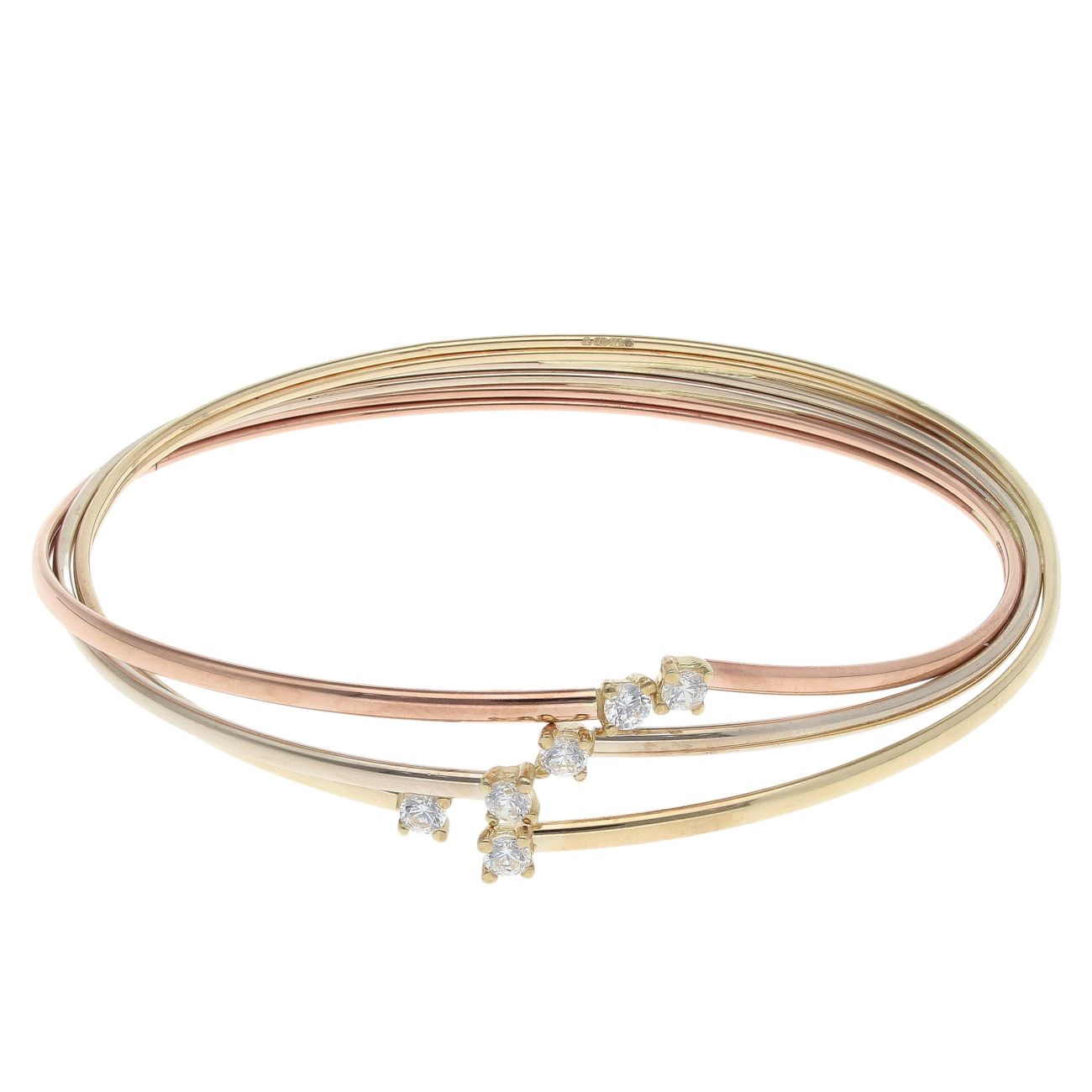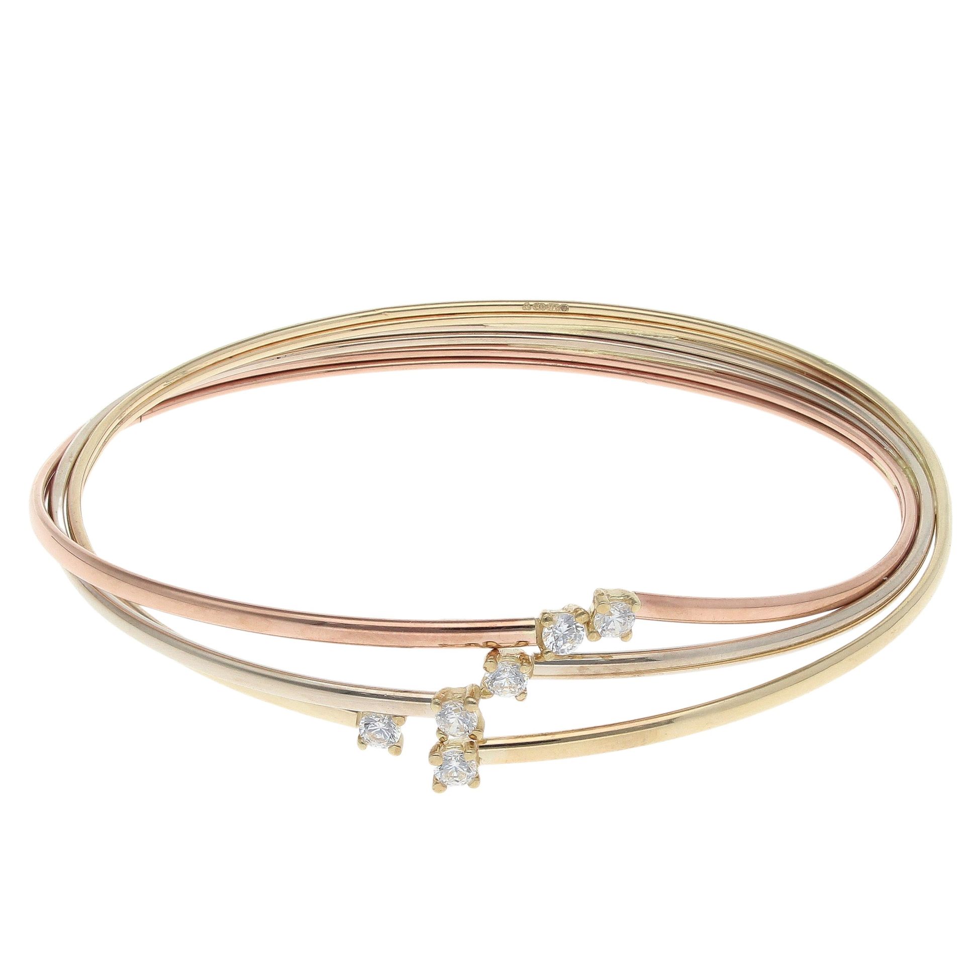 9ct Yellow, White And Rose Gold Cubic Zirconia Bangle