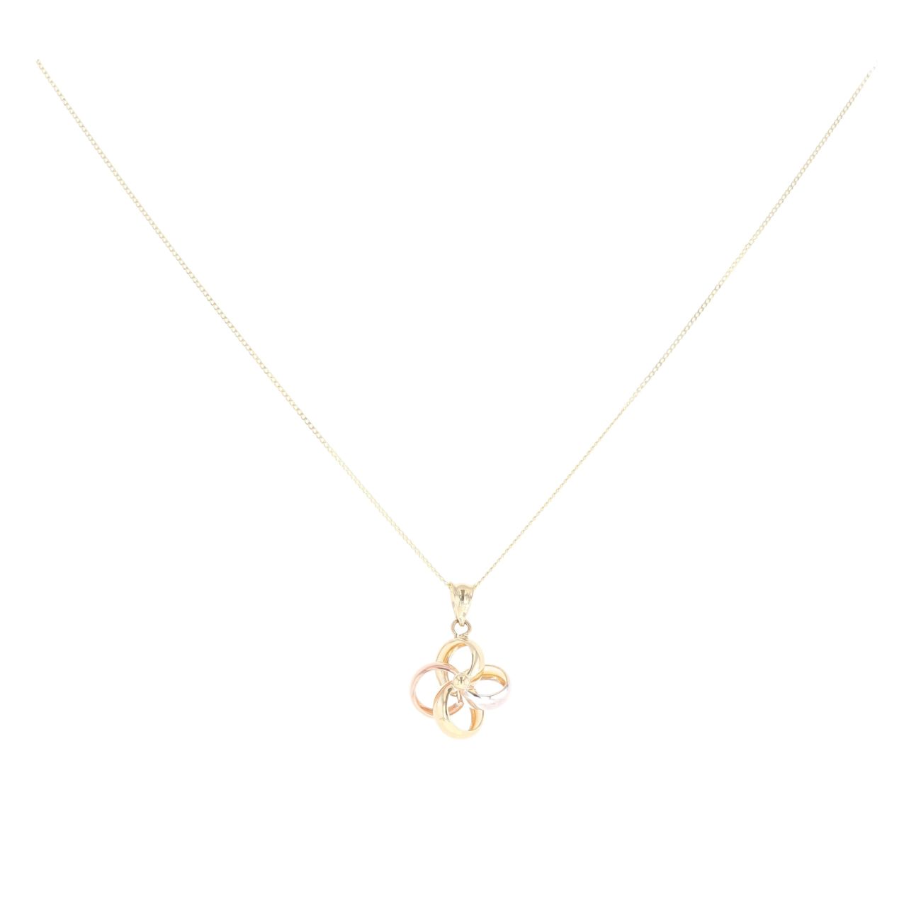 9ct Yellow, White And Rose Gold Loop Flower Pendant And Chain 18"