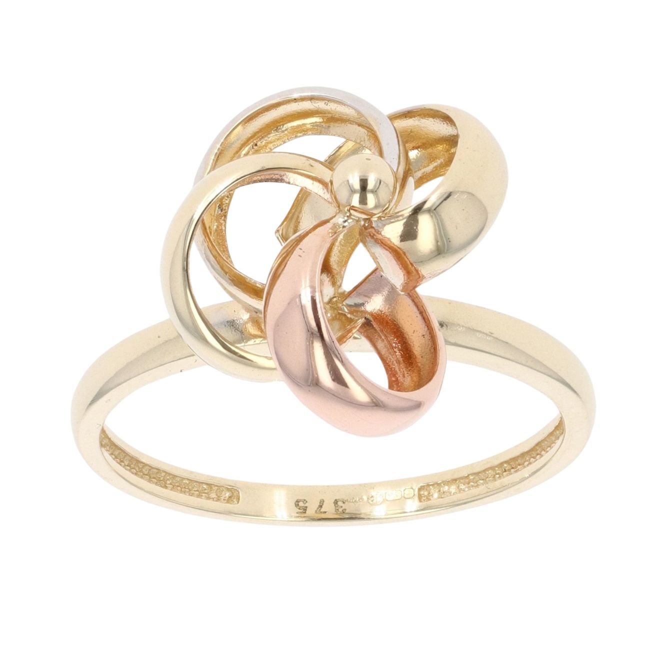 9ct Yellow, White And Rose Gold Loop Flower Ring