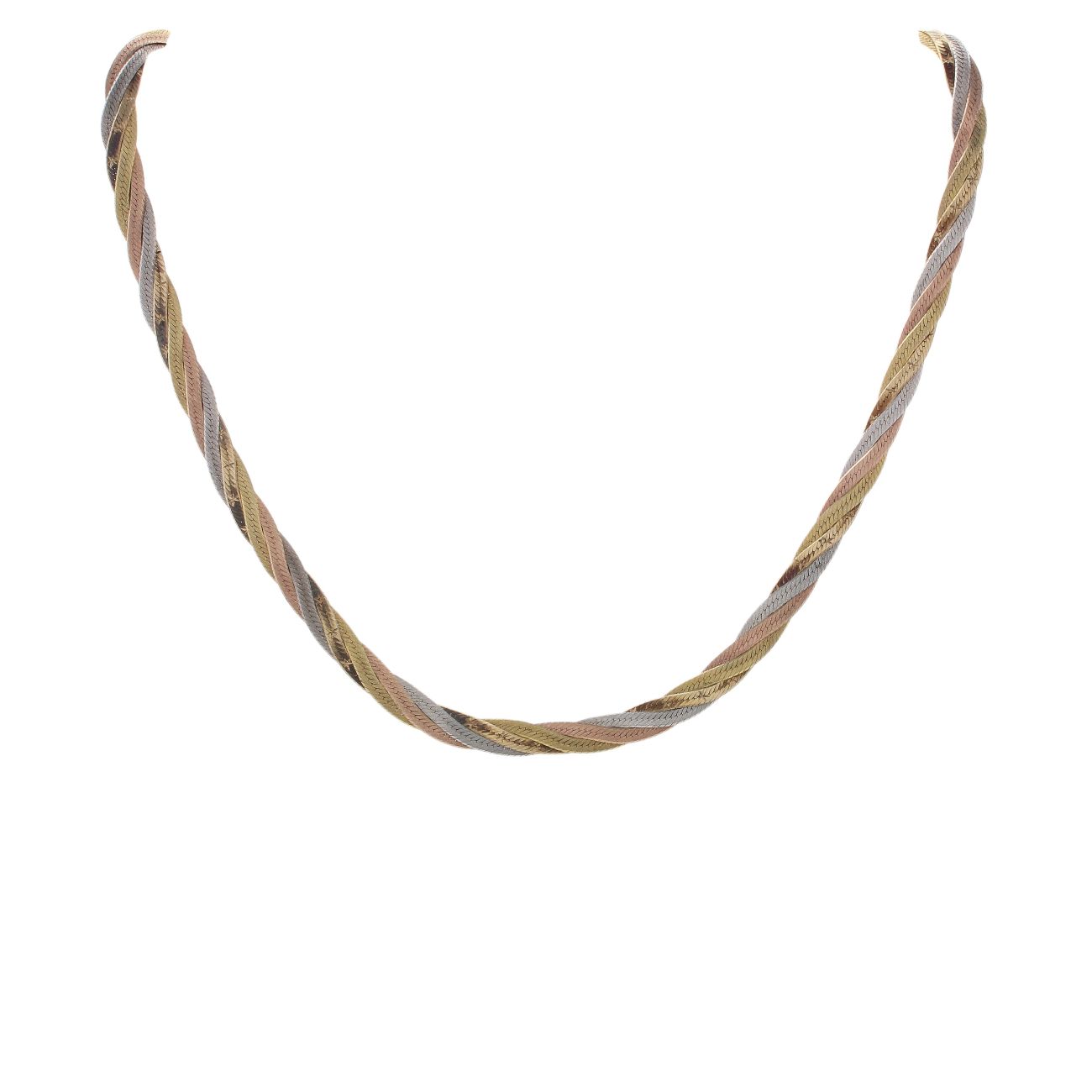 9ct Yellow White and Rose Gold Plait Chain 16"