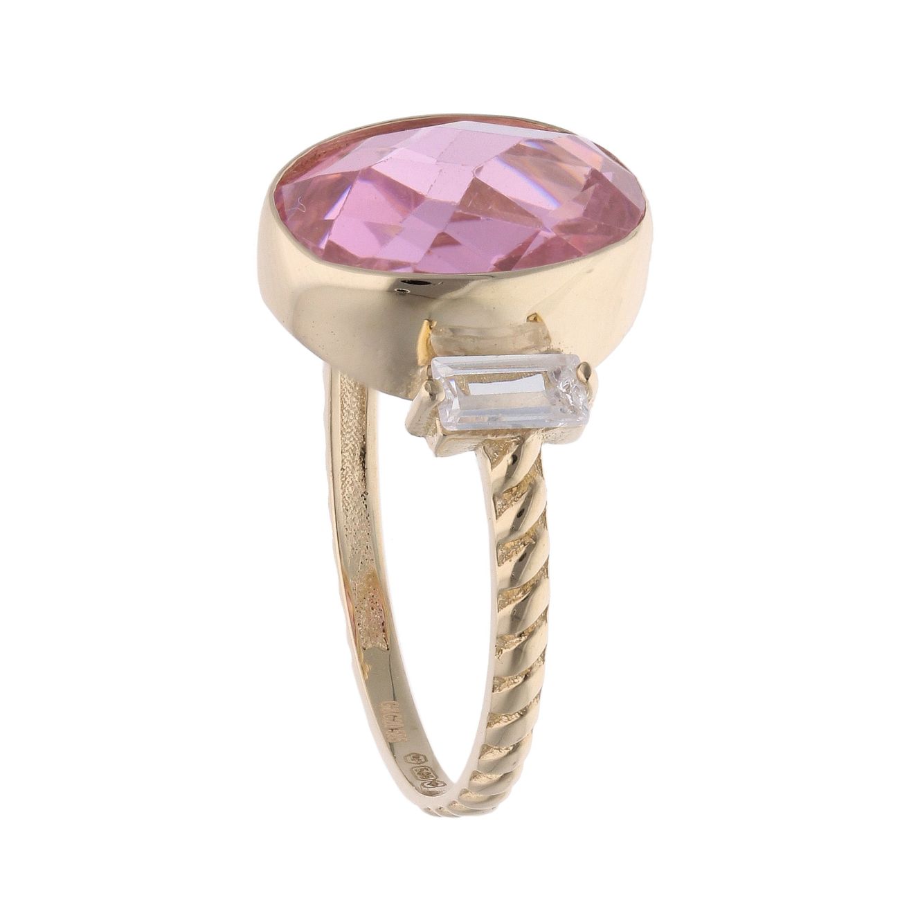 Children's 14ct Yellow Gold Cubic Zirconia And Pink Gemstone Ring