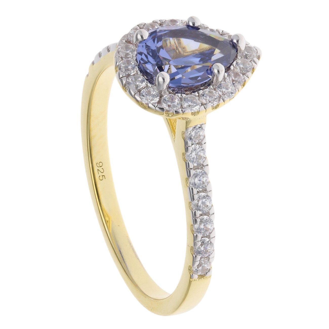 Gold Plated Silver Blue Gemstone And Cubic Zirconia Cluster Ring