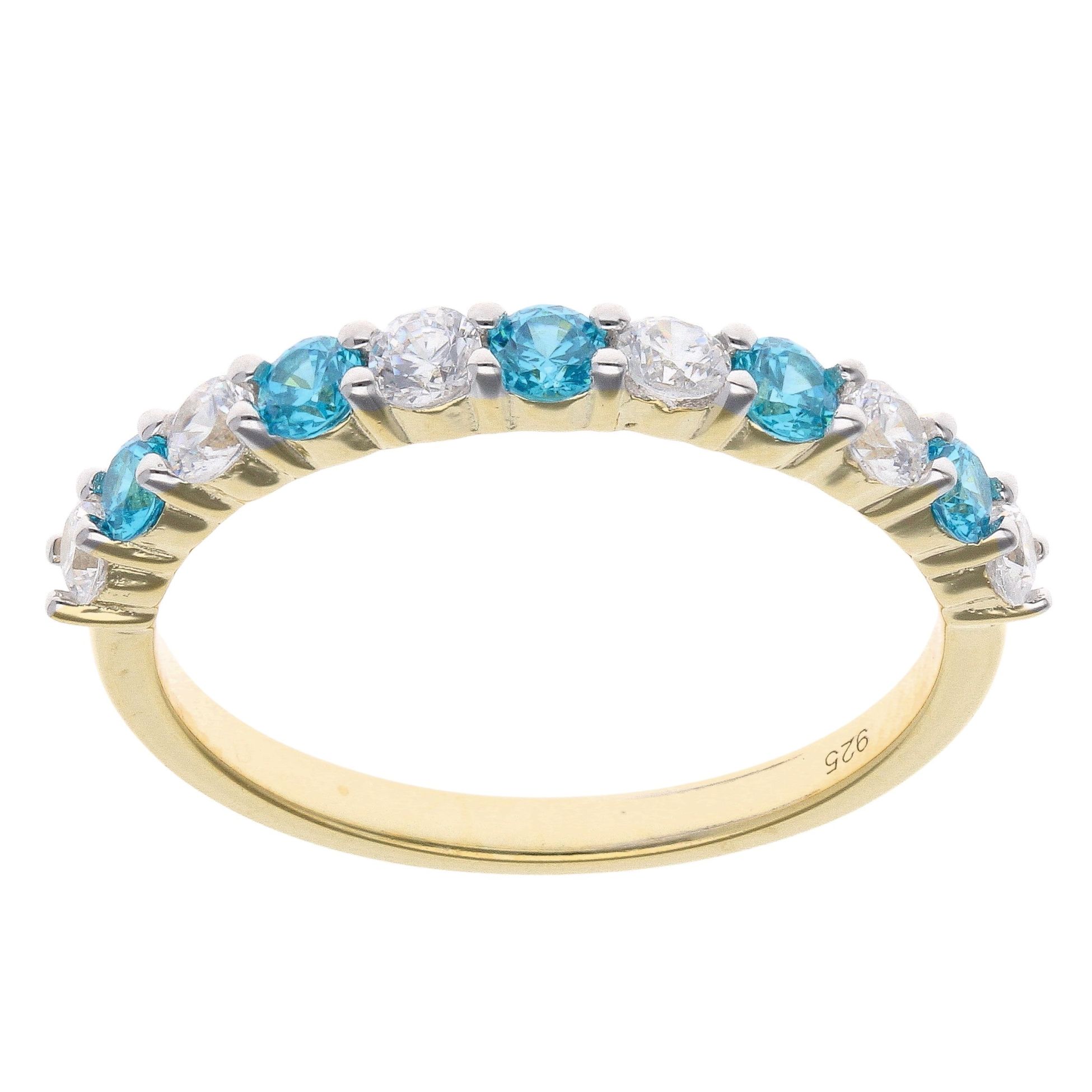 Gold Plated Silver Blue Gemstone And Cubic Zirconia Half Eternity Ring