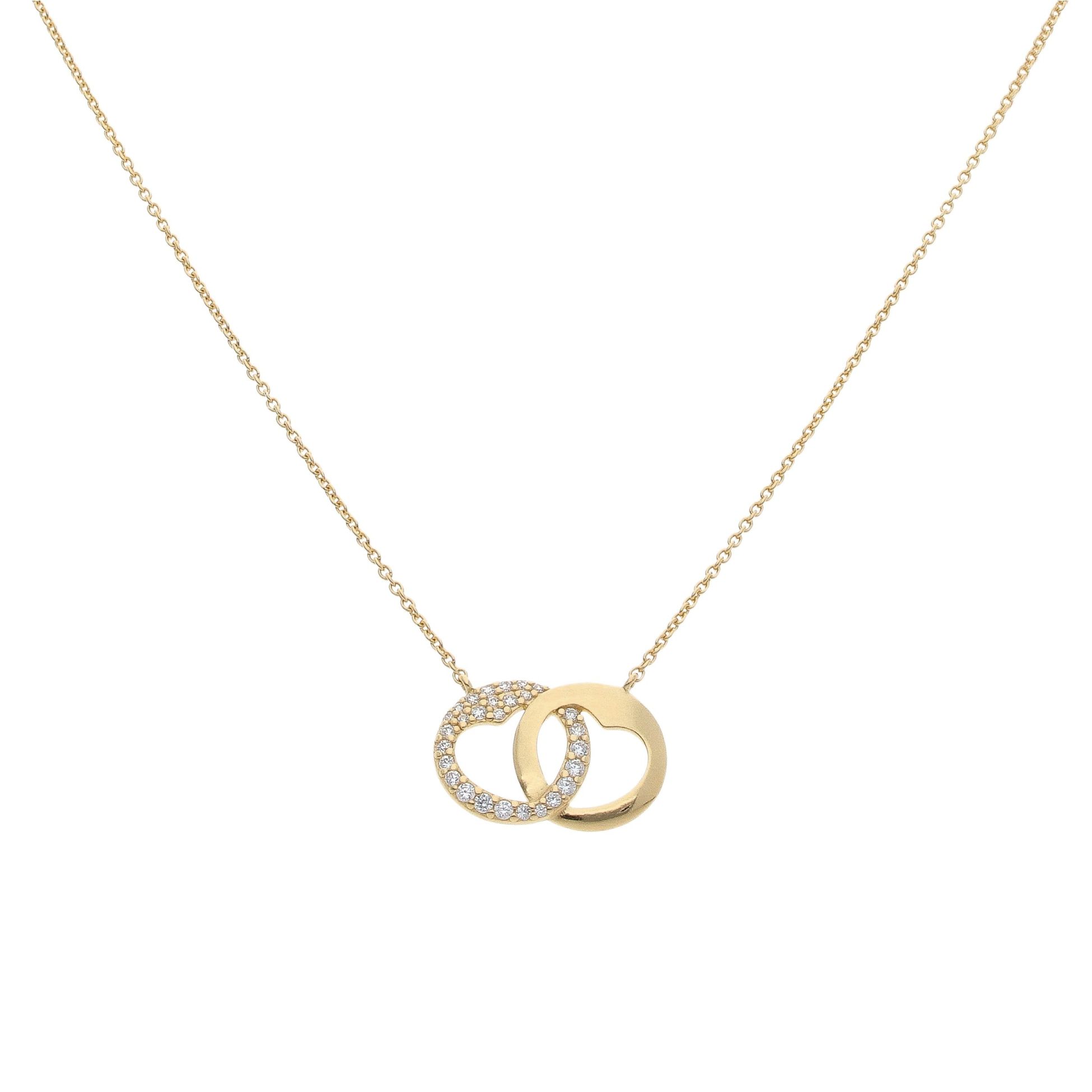 Gold Plated Silver Cubic Zirconia Double Heart Cut Out Pendant And Chain 18"