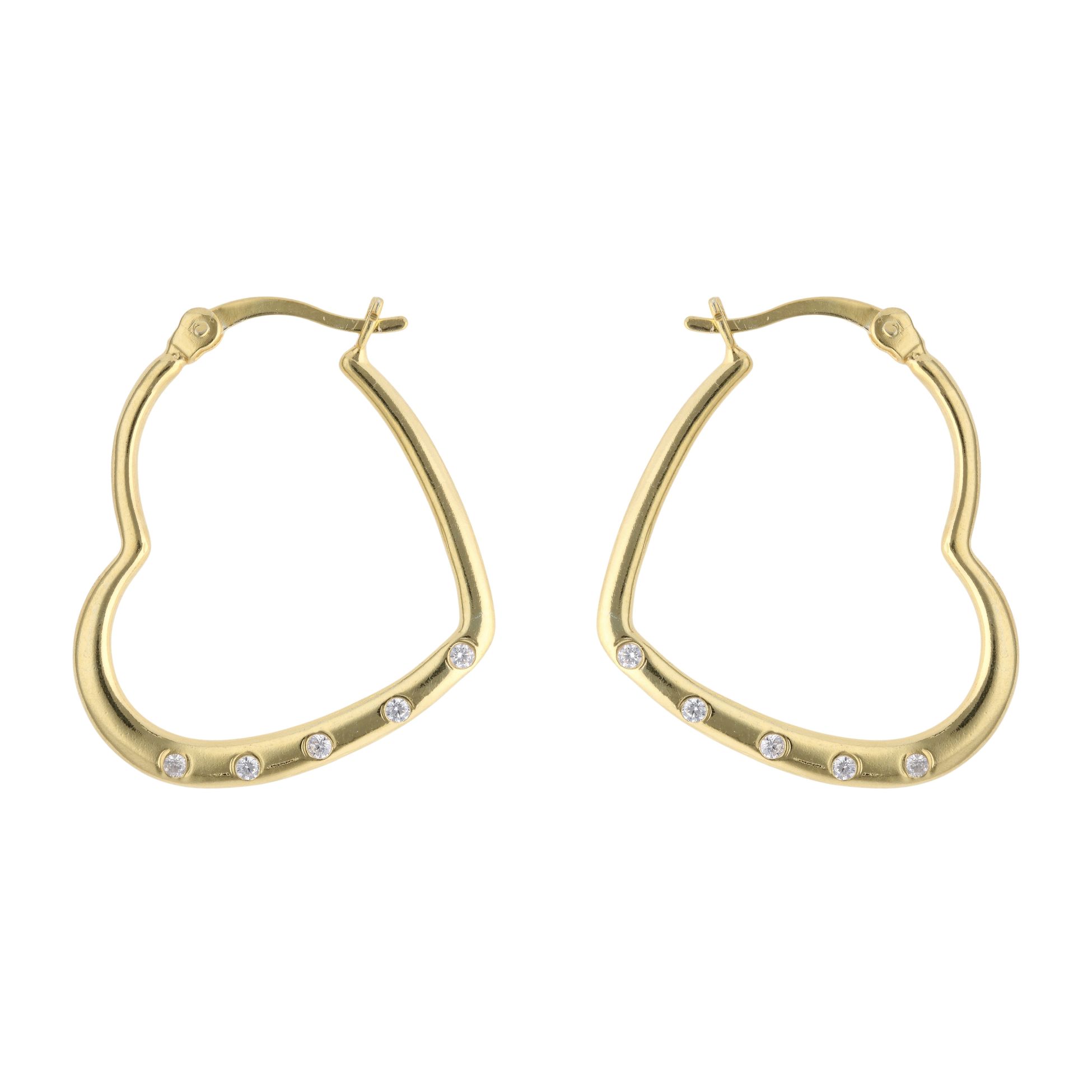 Gold Plated Silver Cubic Zirconia Heart Hoop Earrings