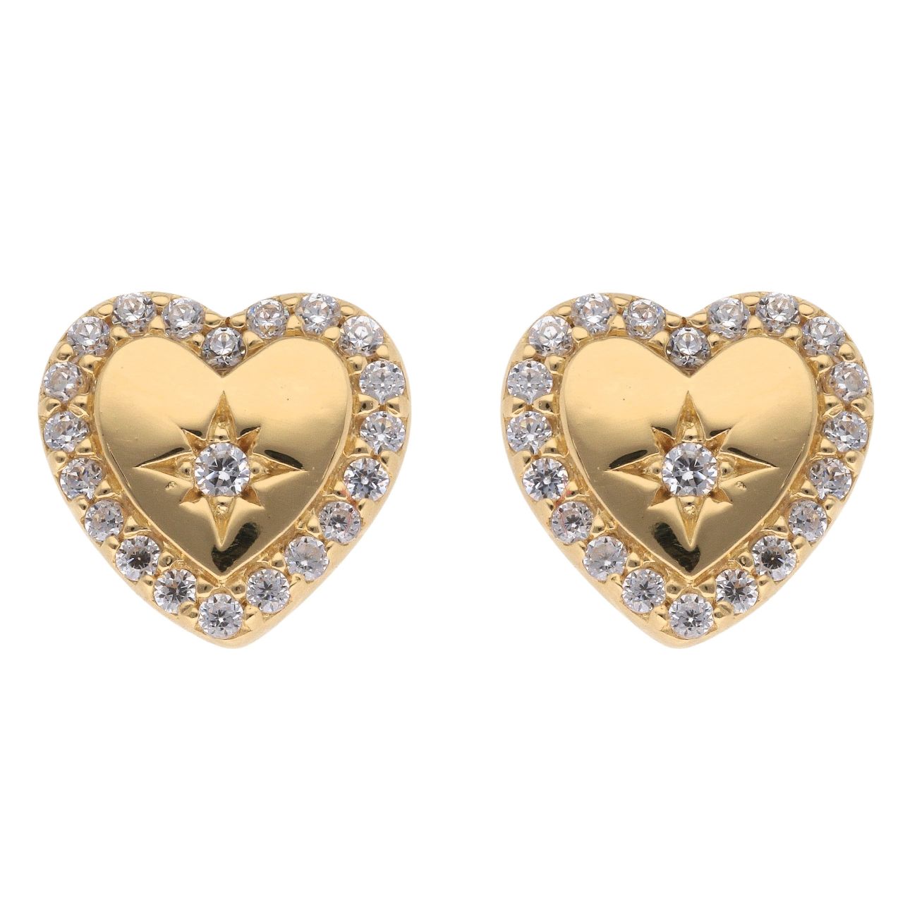 Gold Plated Silver Cubic Zirconia Heart Stud Earrings