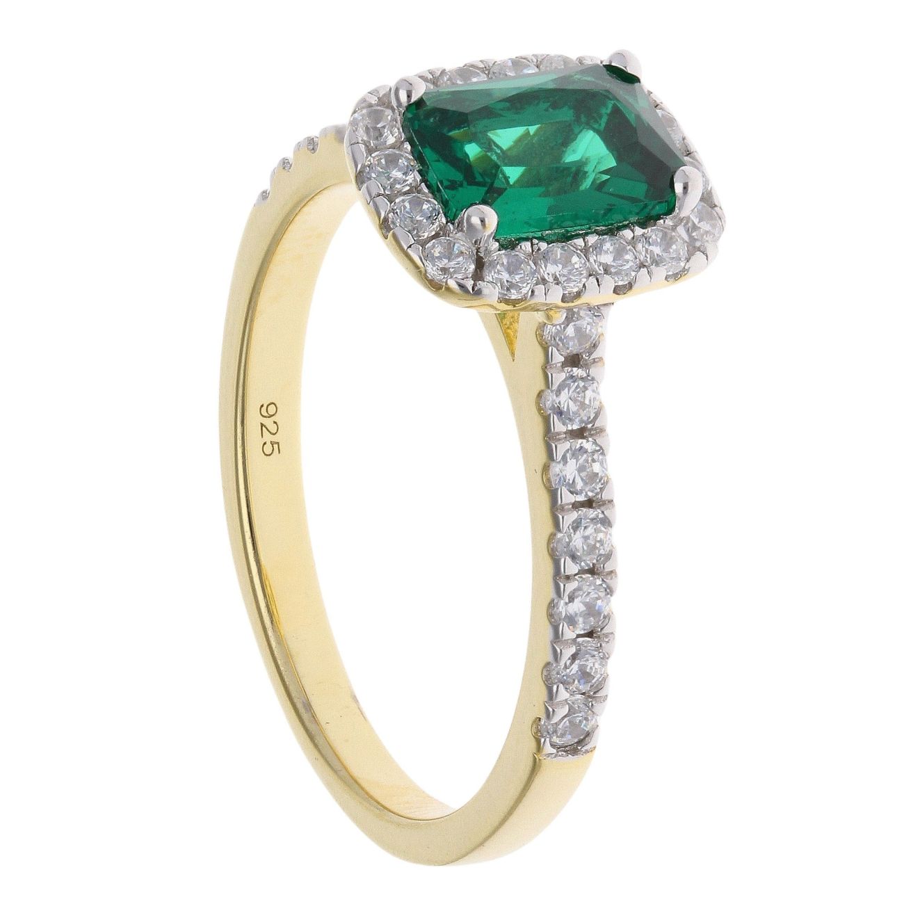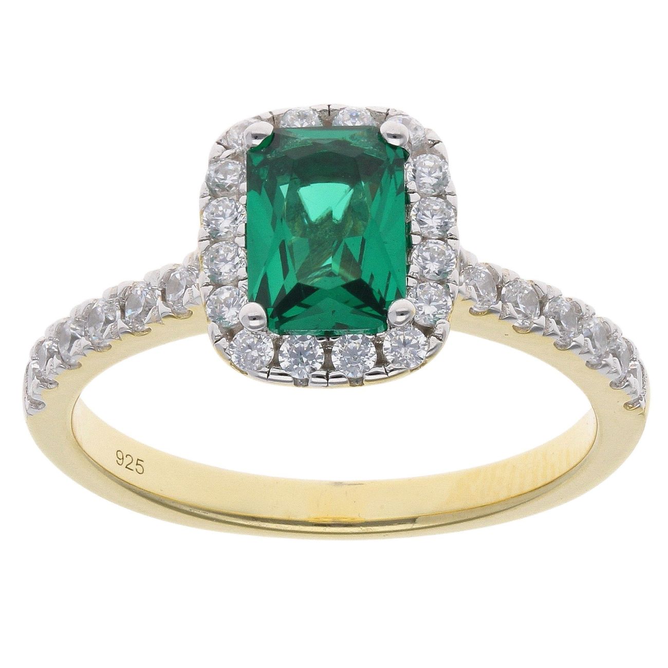 Gold Plated Silver Green Gemstone And Cubic Zirconia Cluster Ring