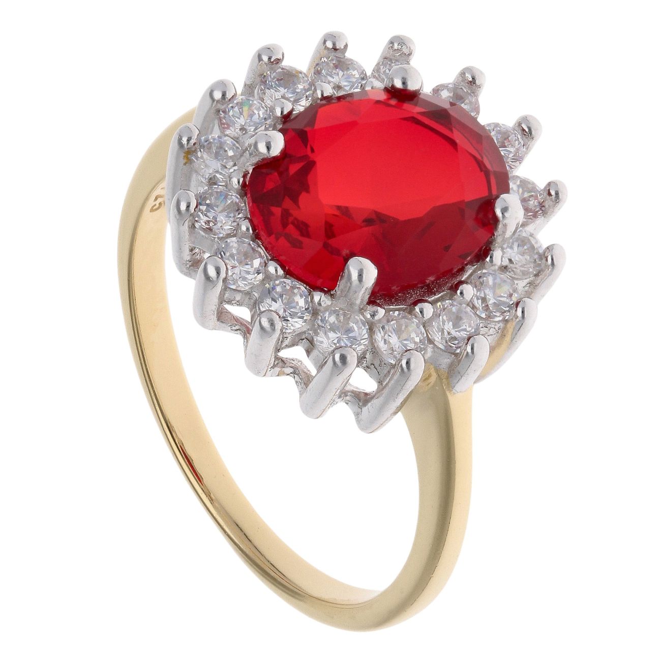 Gold Plated Silver Red Gemstone And Cubic Zirconia Cluster Ring