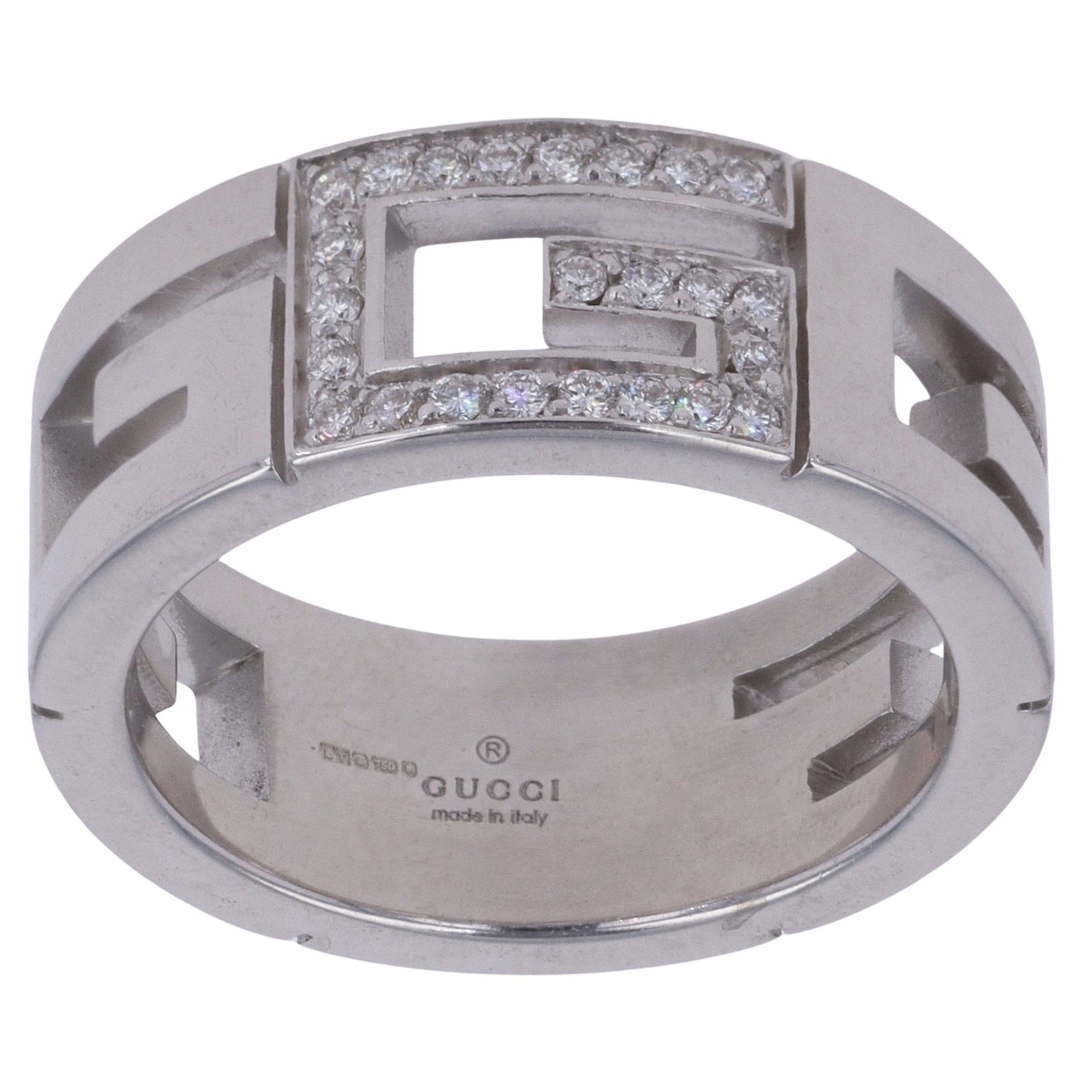 Gucci 18ct White Gold 0.15ct Brilliant Cut Diamond G Logo Ring
