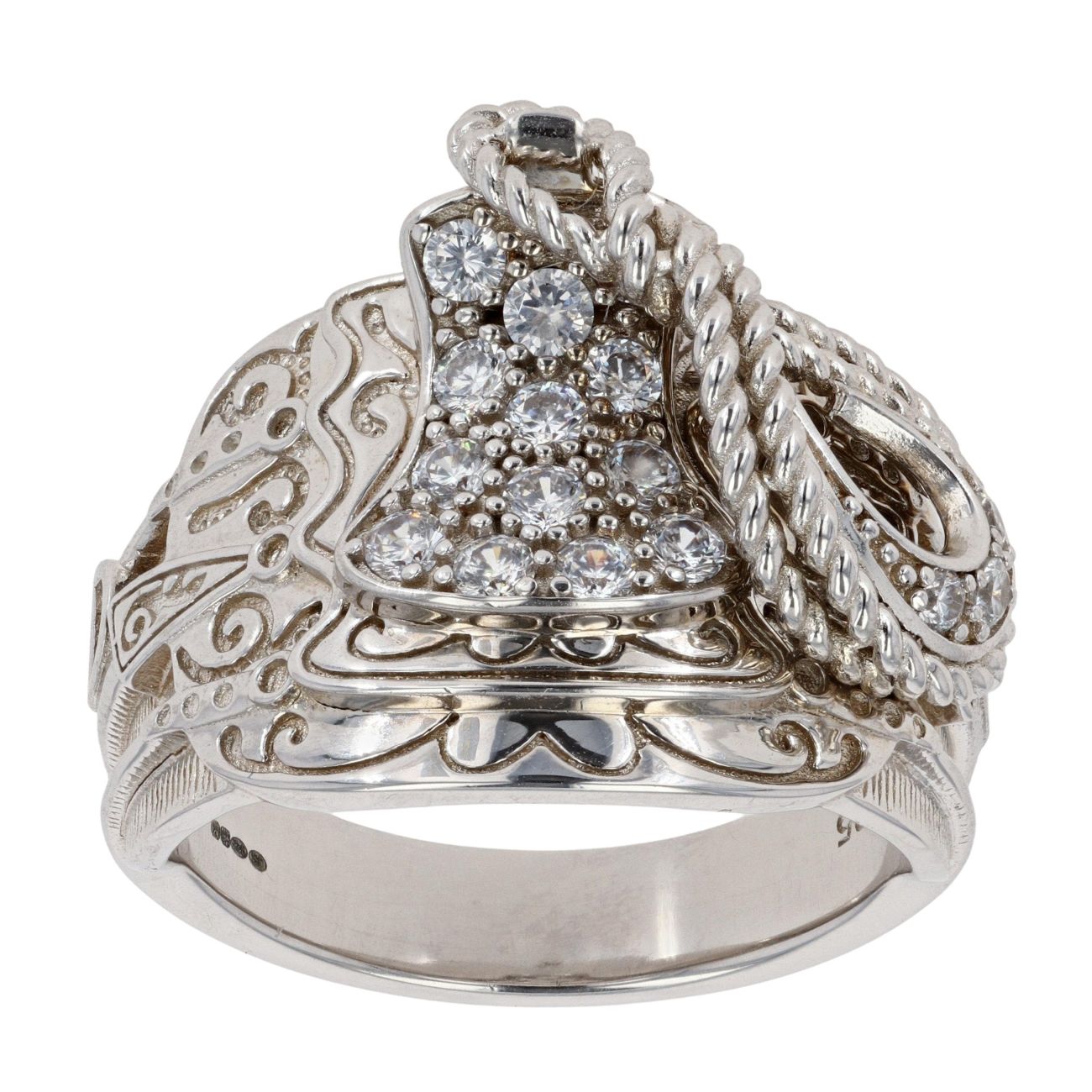 Silver Cubic Zirconia Saddle Ring by Icesia