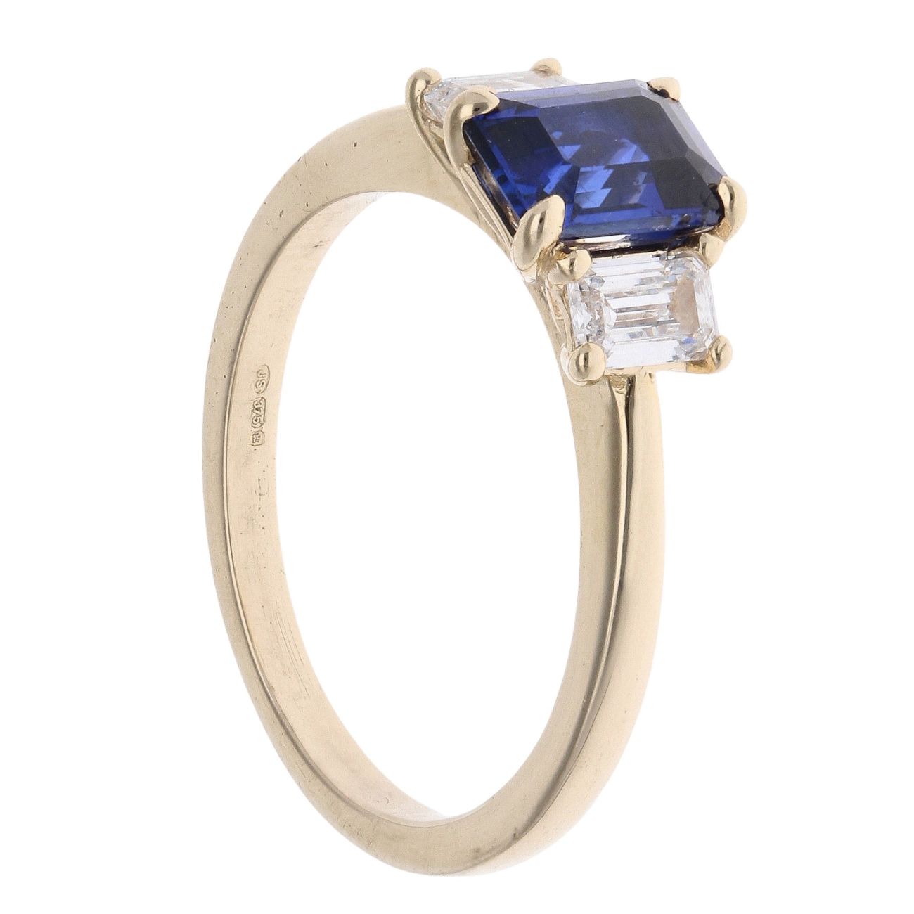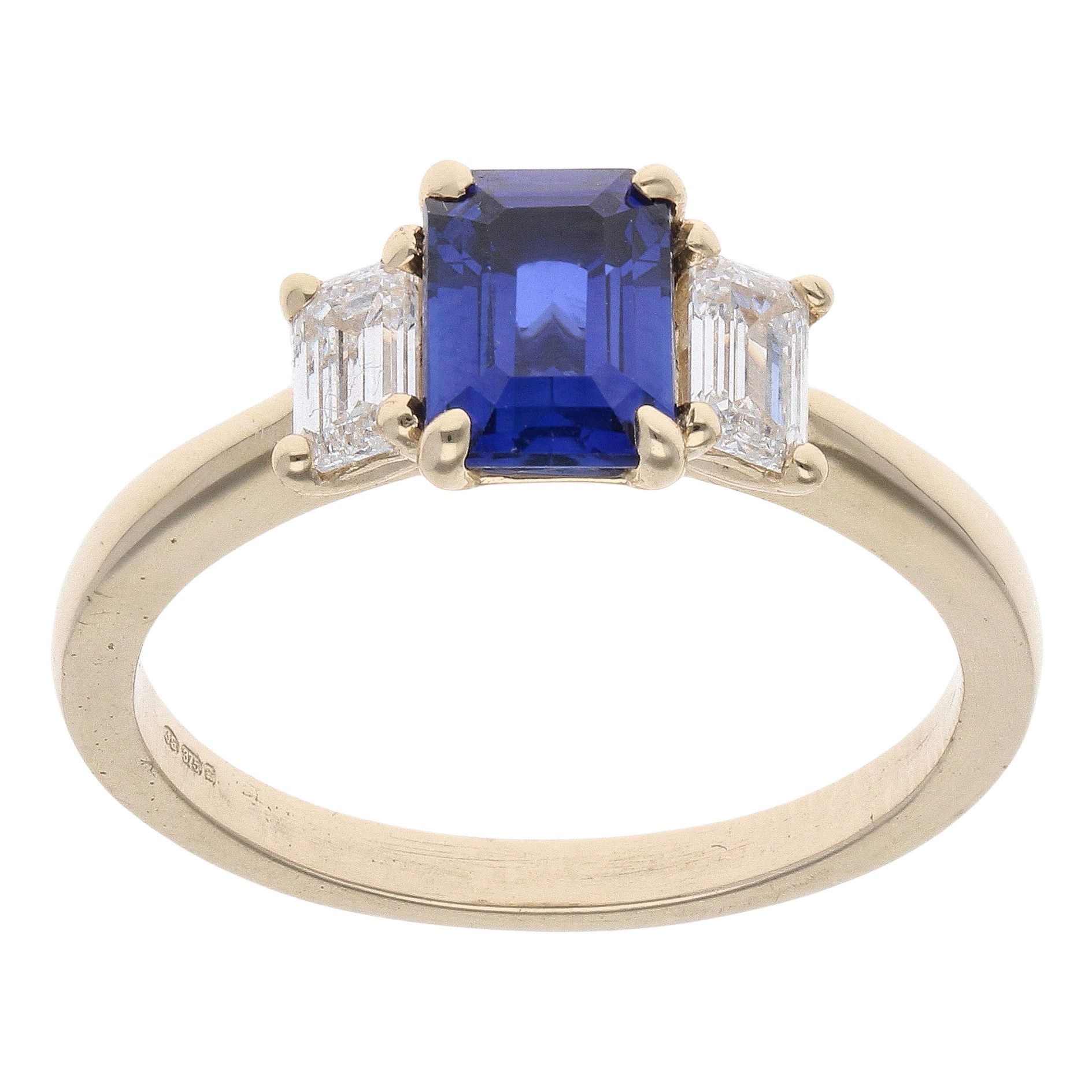 Lab Grown 9ct Yellow Gold 0.50ct Baguette Cut Diamond And Created Sapphire Ring