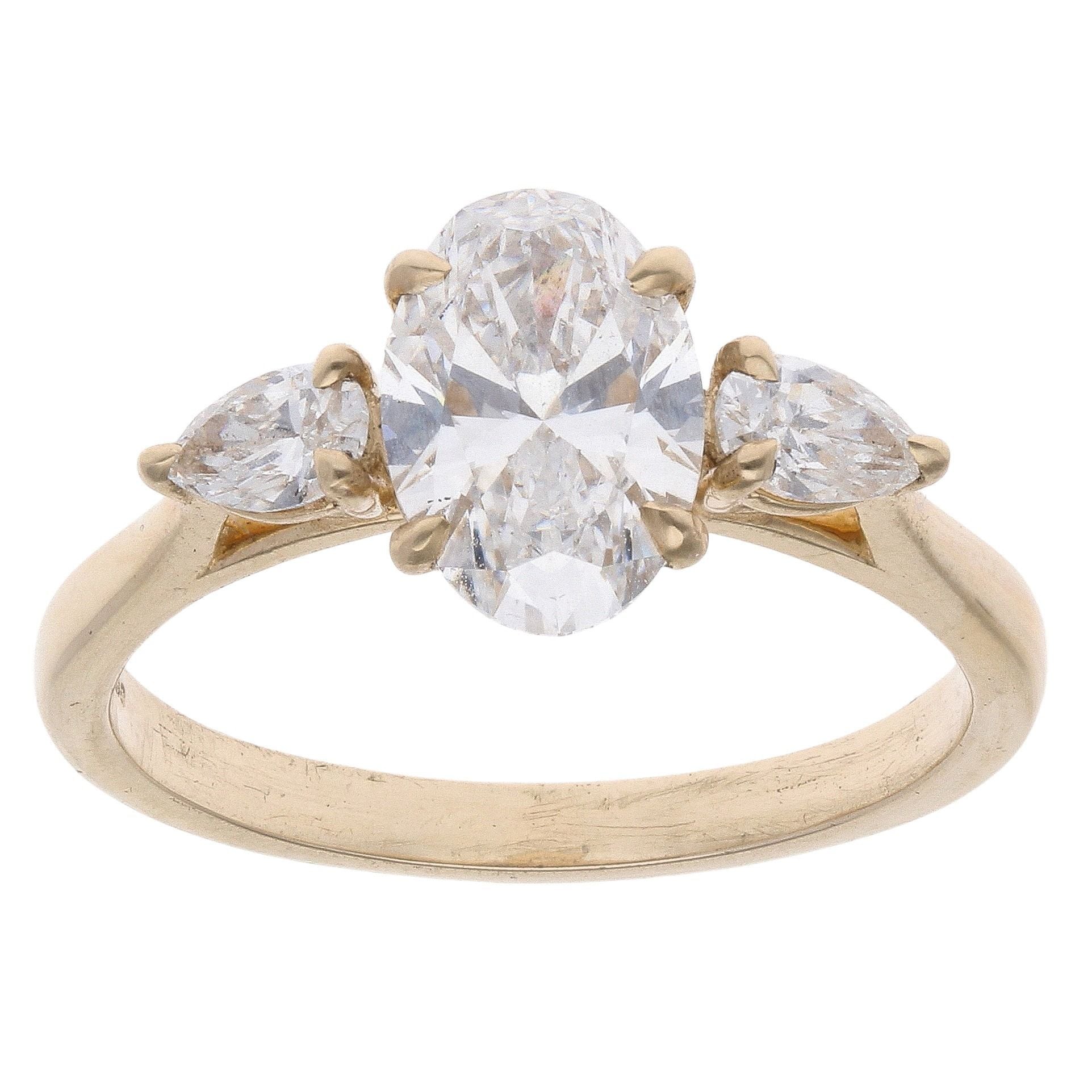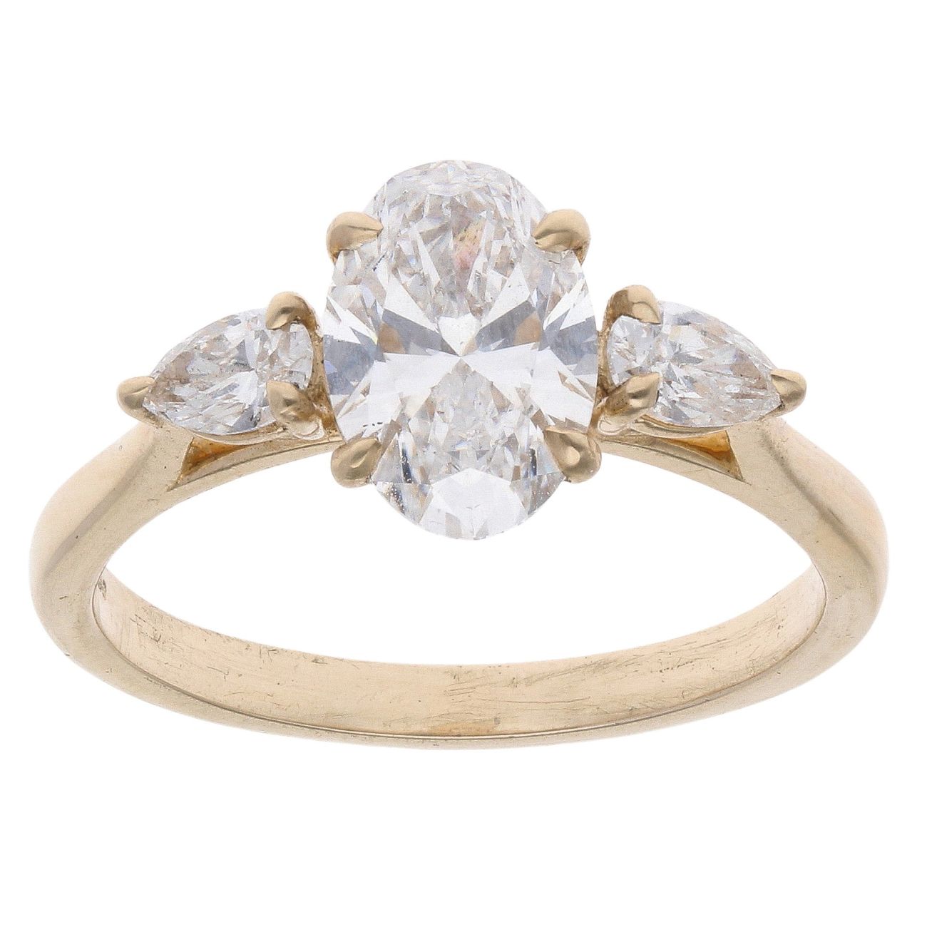 Lab Grown 9ct Yellow Gold 1.90ct Oval And Pear Cut Diamond Trilogy Ring