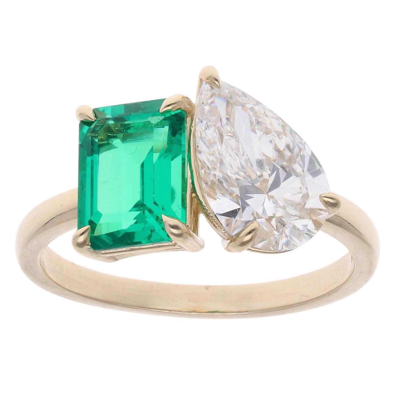 Lab Grown 9ct Yellow Gold 2.07ct Pear Cut Diamond And Created Emerald Ring